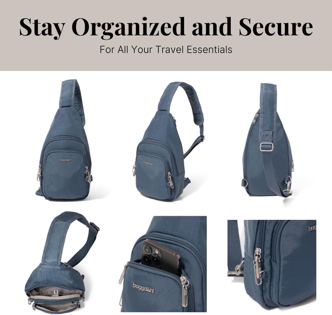 Baggallini Anti-Theft Daytripper Sling 7×12 Crossbody Travel Safe Bag W/Securtex Locking Zippers, Slash-Resistant, RFID(Mist)