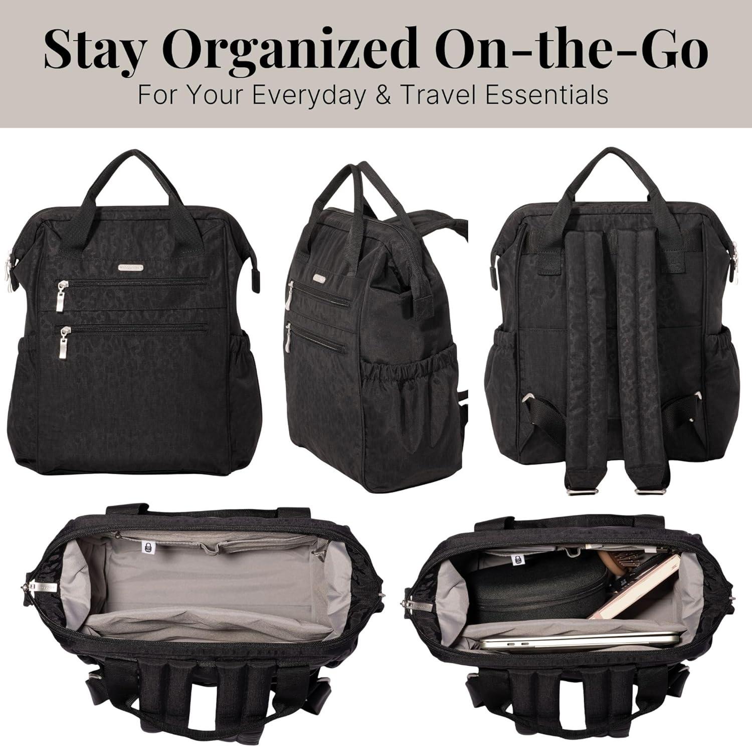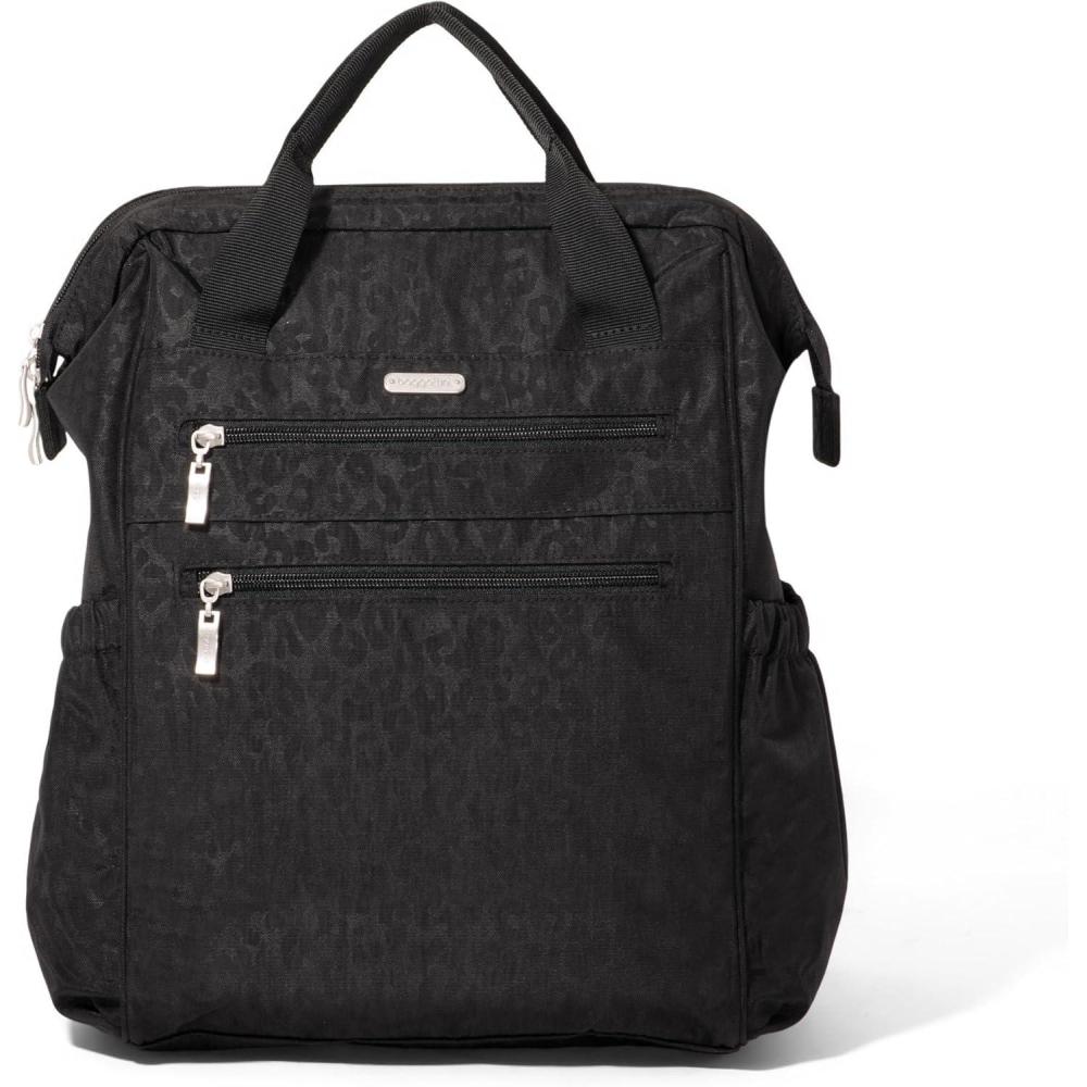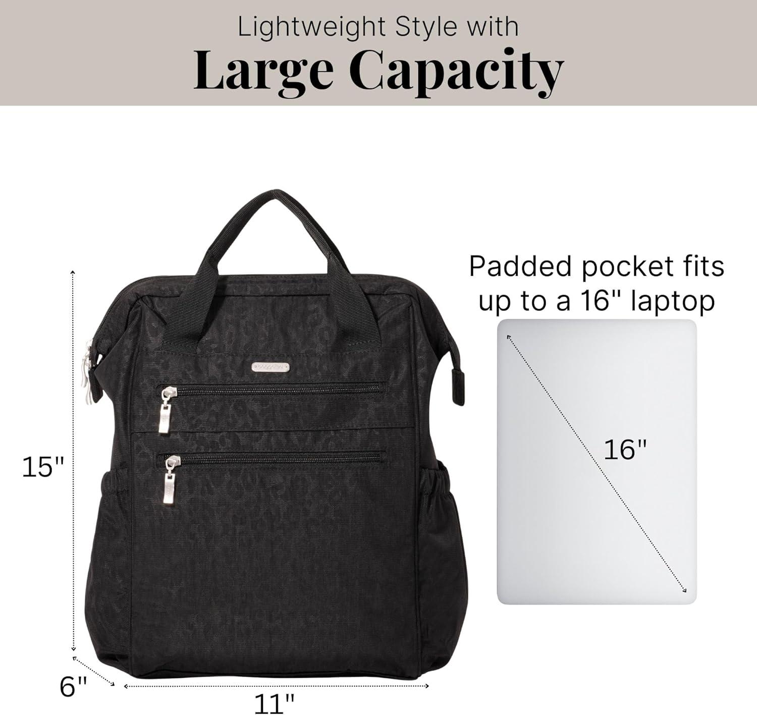 Baggallini City Scape Backpack – 15″x11″ Lightweight Work Travel Bag w/Luggage Sleeve & RFID(Black Cheetah Emboss)