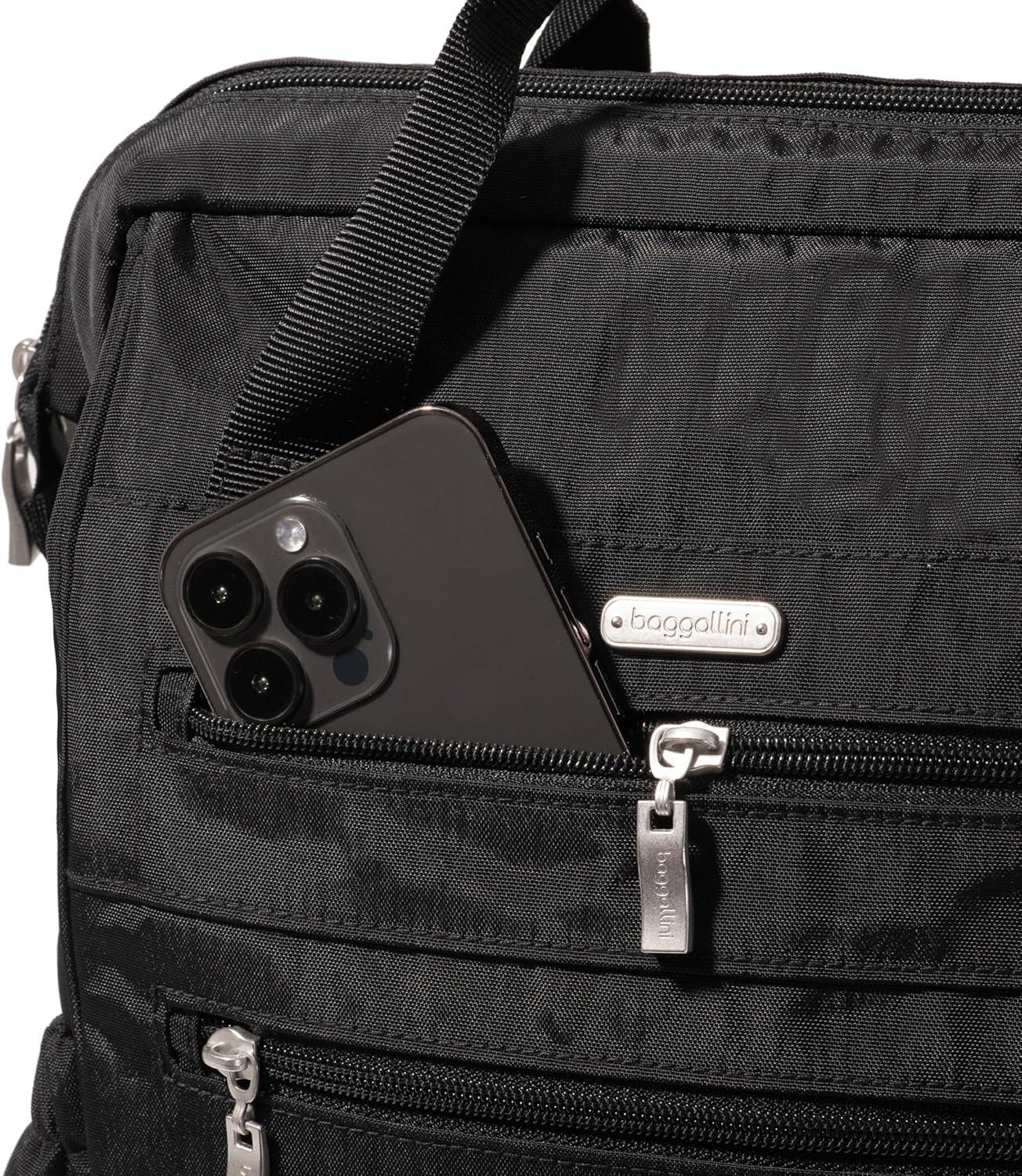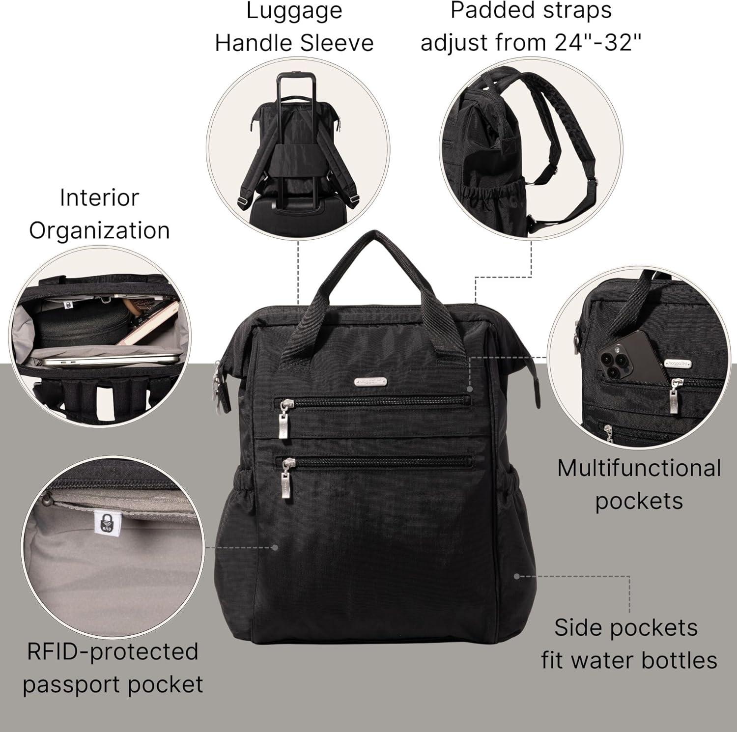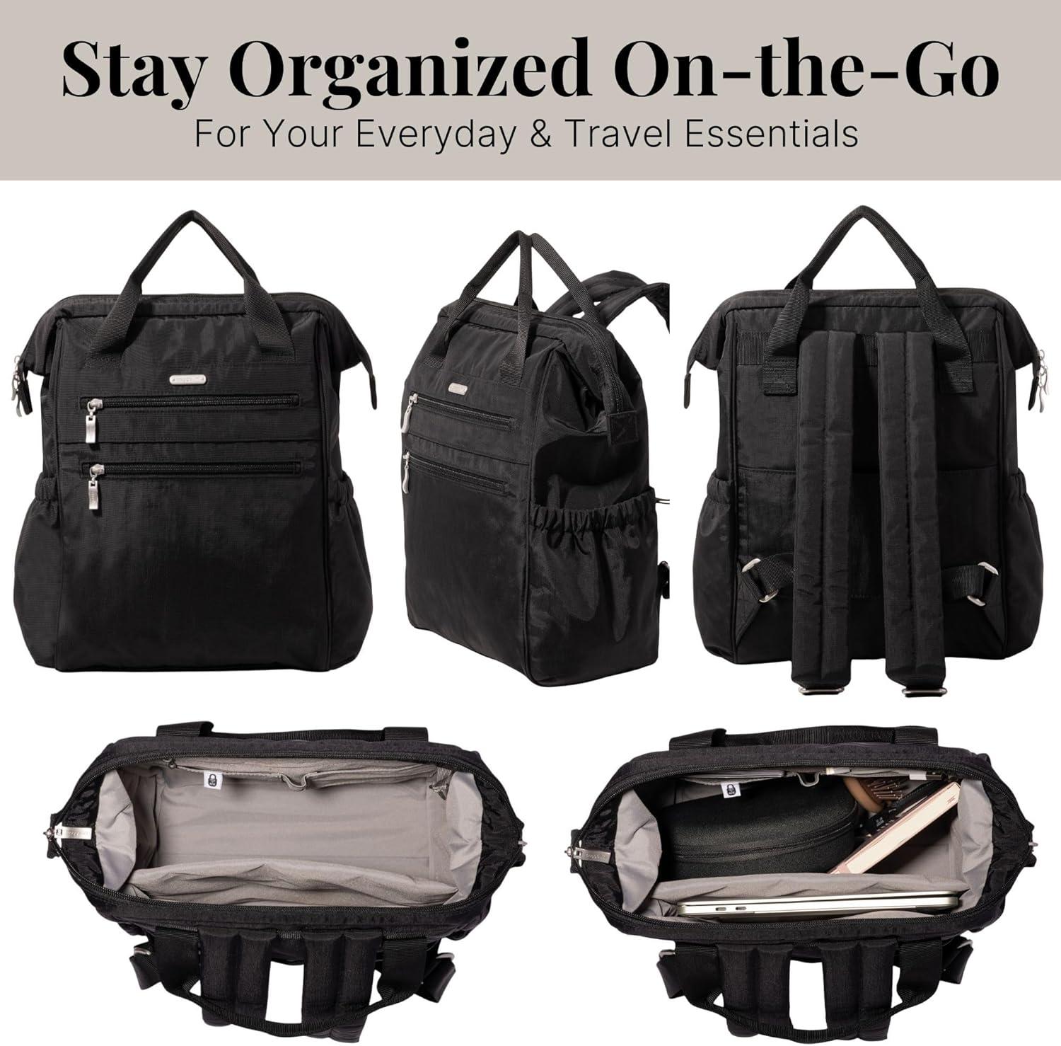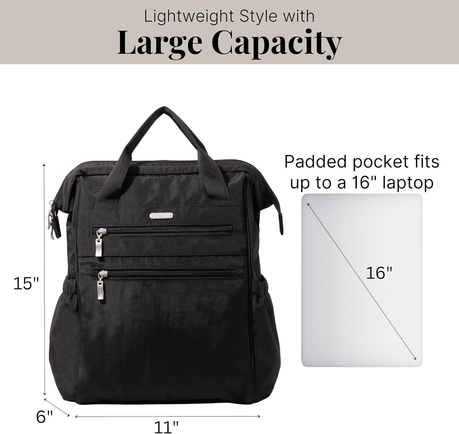 Baggallini City Scape Backpack – 15″x11″ Lightweight Work Travel Bag w/Luggage Sleeve & RFID(Black)