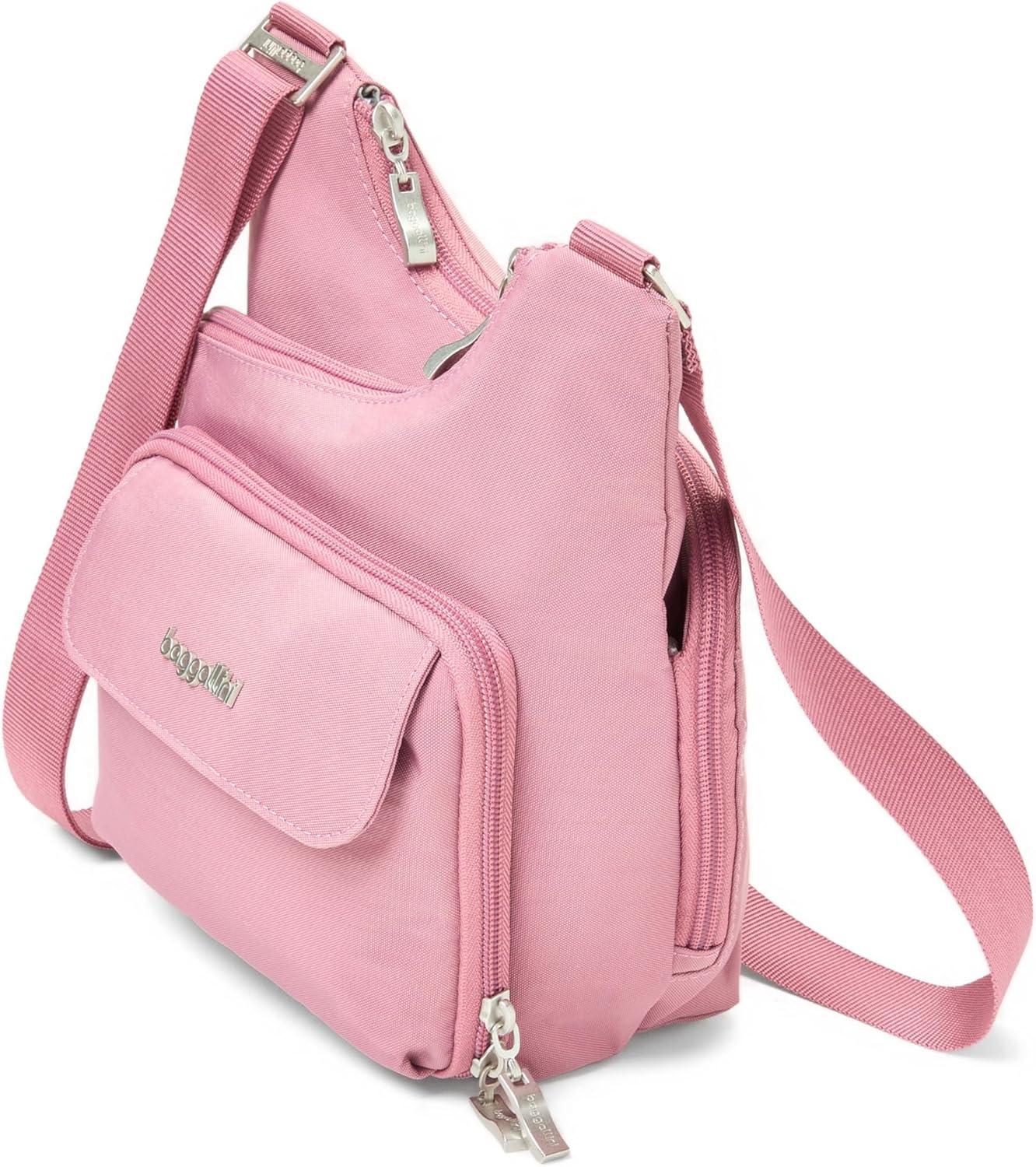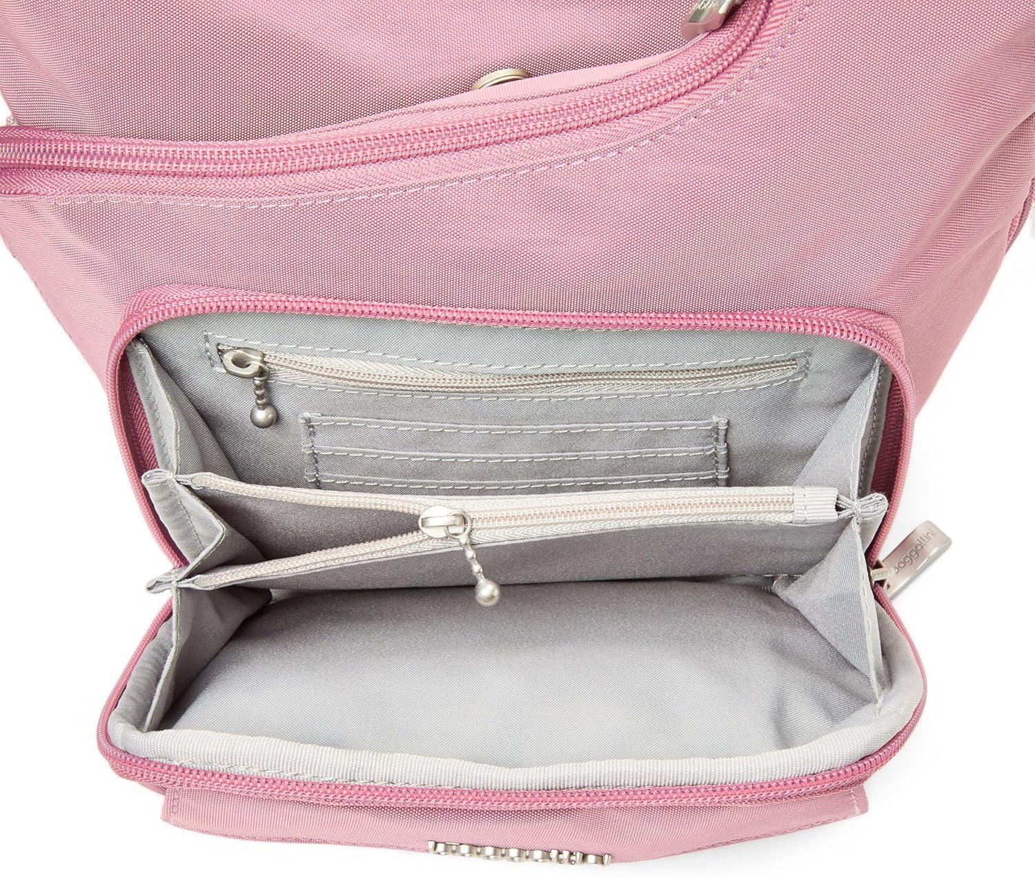 Baggallini Criss Cross 10×11 Crossbody Women Lightweight Water-Resistant Nylon Travel Bag W/RFID & Quick Access Pockets(Dusty Mauve)