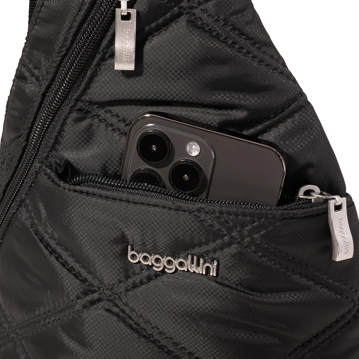 Baggallini Mini Sling – 12×7 Sling Crossbody Bag Backpack with Adjustable Shoulder Strap(Black Quilt)