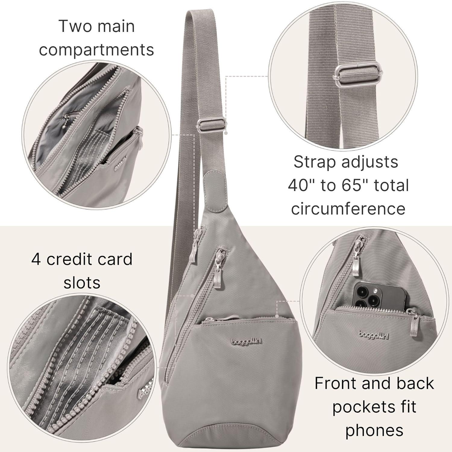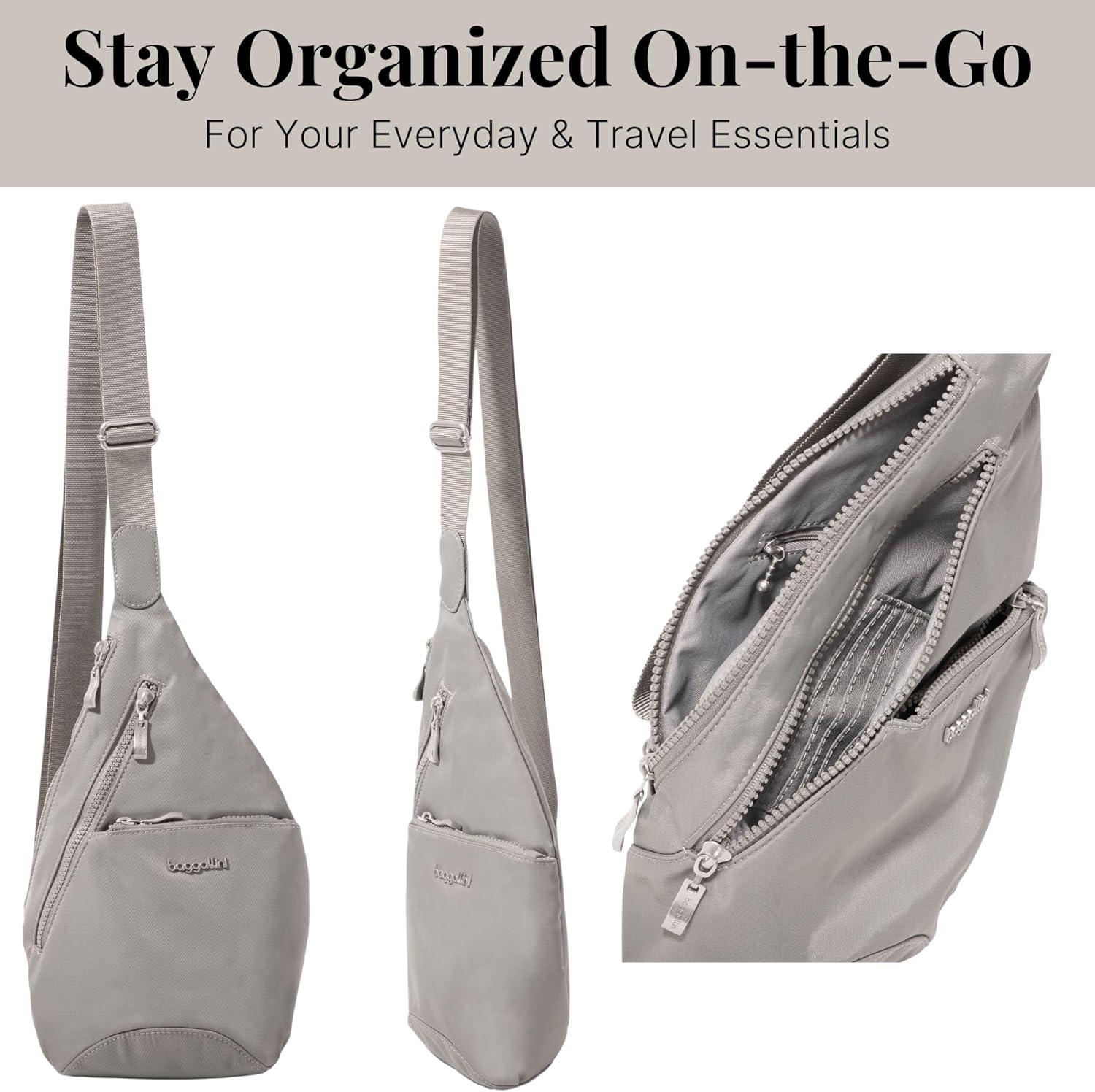 ON-THE-GO ORGANIZATION: With 2 main compartments, a front and back zipper exterior pocket, 4 interior credit card slots and plenty of pockets, this travel sling backpack promises easy-access to your travel essentials.