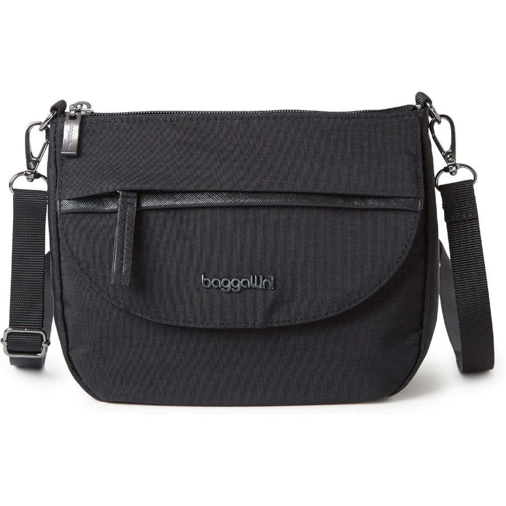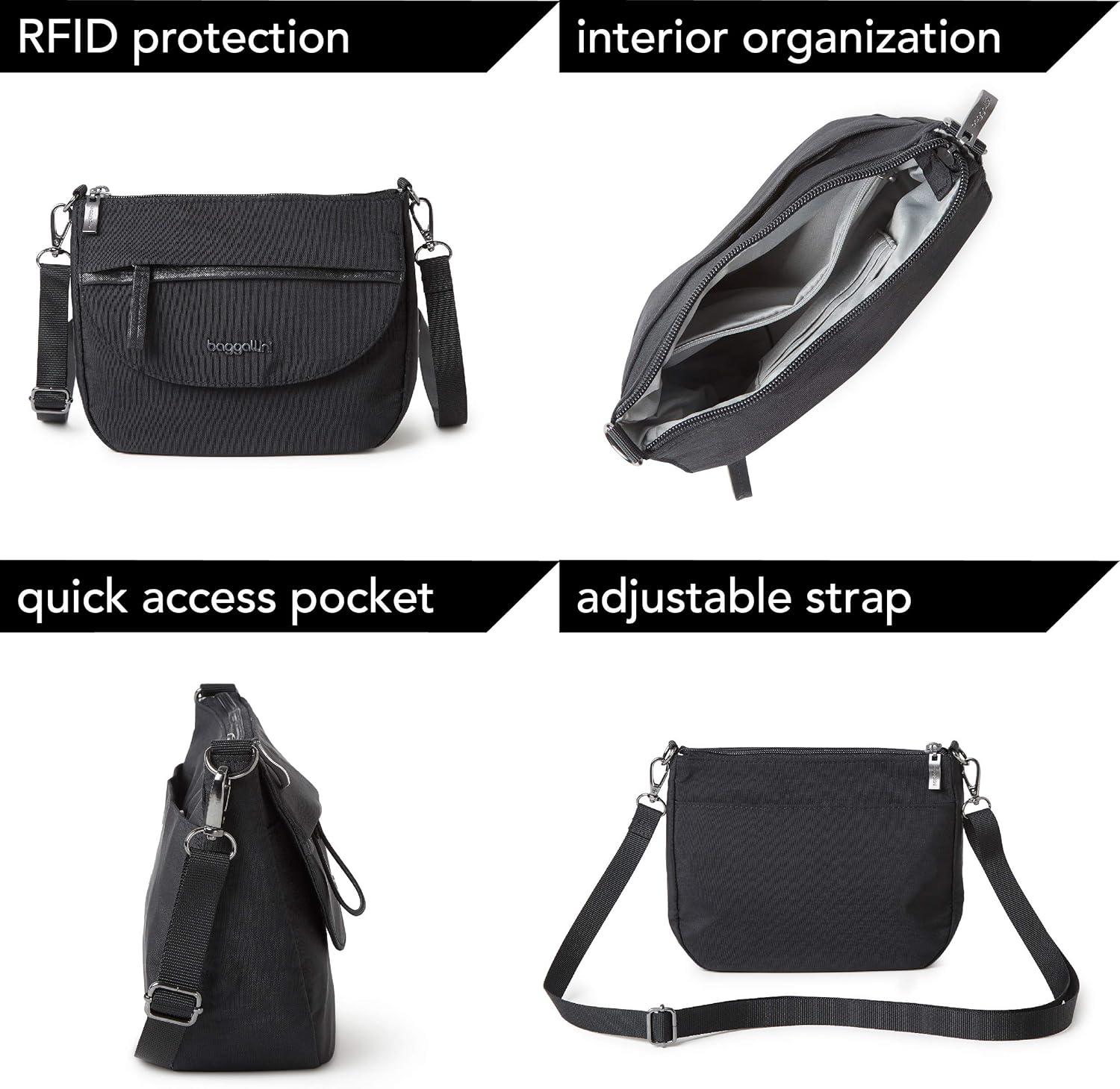 The Pocket Crossbody 2.0 from Baggallini has been elevated with hints of saffiano faux leather trim and sleek gunmetal hardware. Designed with the essentials in mind, this lightweight travel bag features 3 card slots with built-in RFID protection to keep your information secure. Plus, the quick access phone pocket and plenty of interior organization and multifunctional pockets will always keep your essentials within reach.