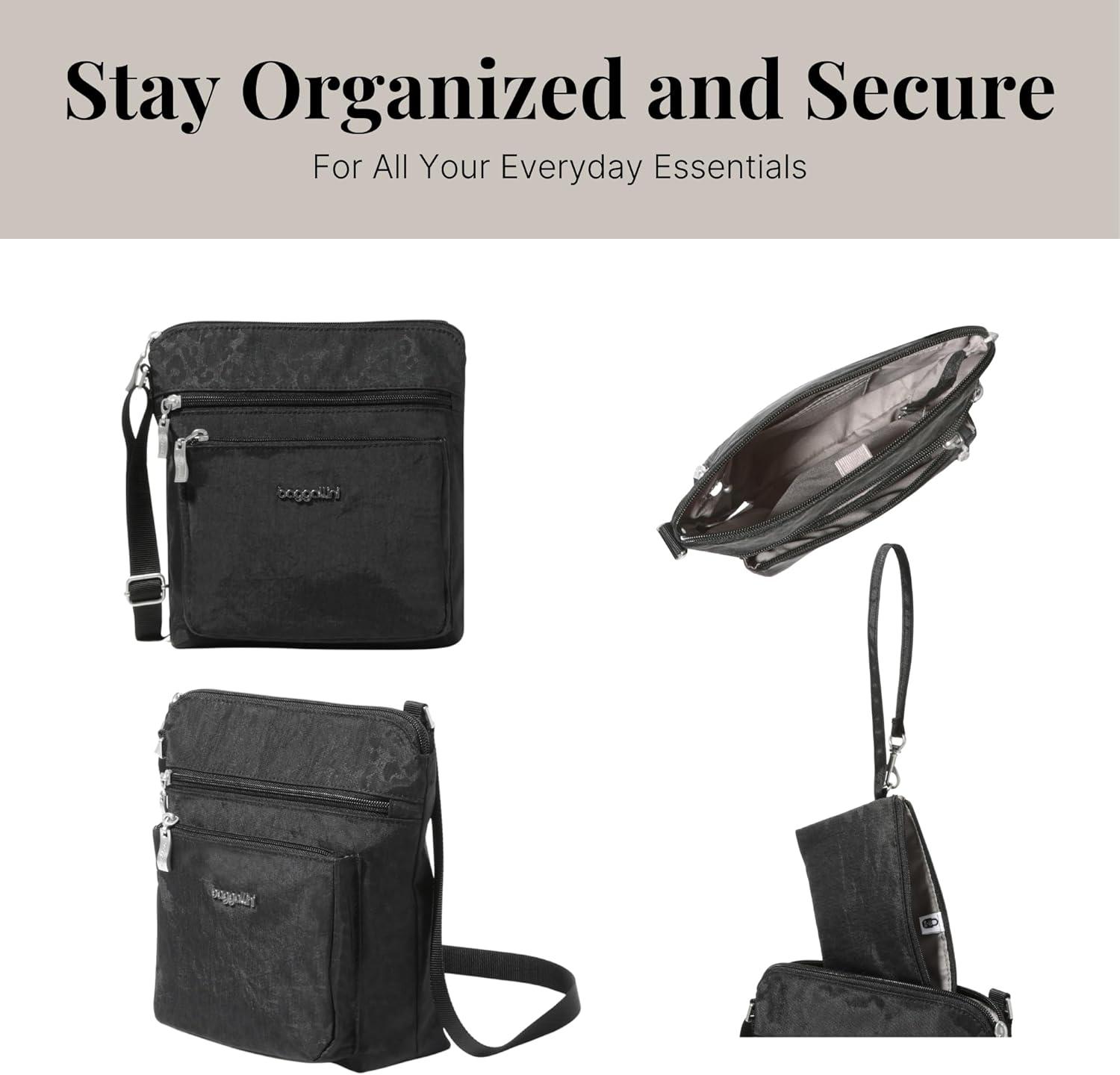 Baggallini Pocket Crossbody Bags for Women 8×8 Small Lightweight Durable Water-Resistant Travel Purse W/RFID(Black Hydrangea)