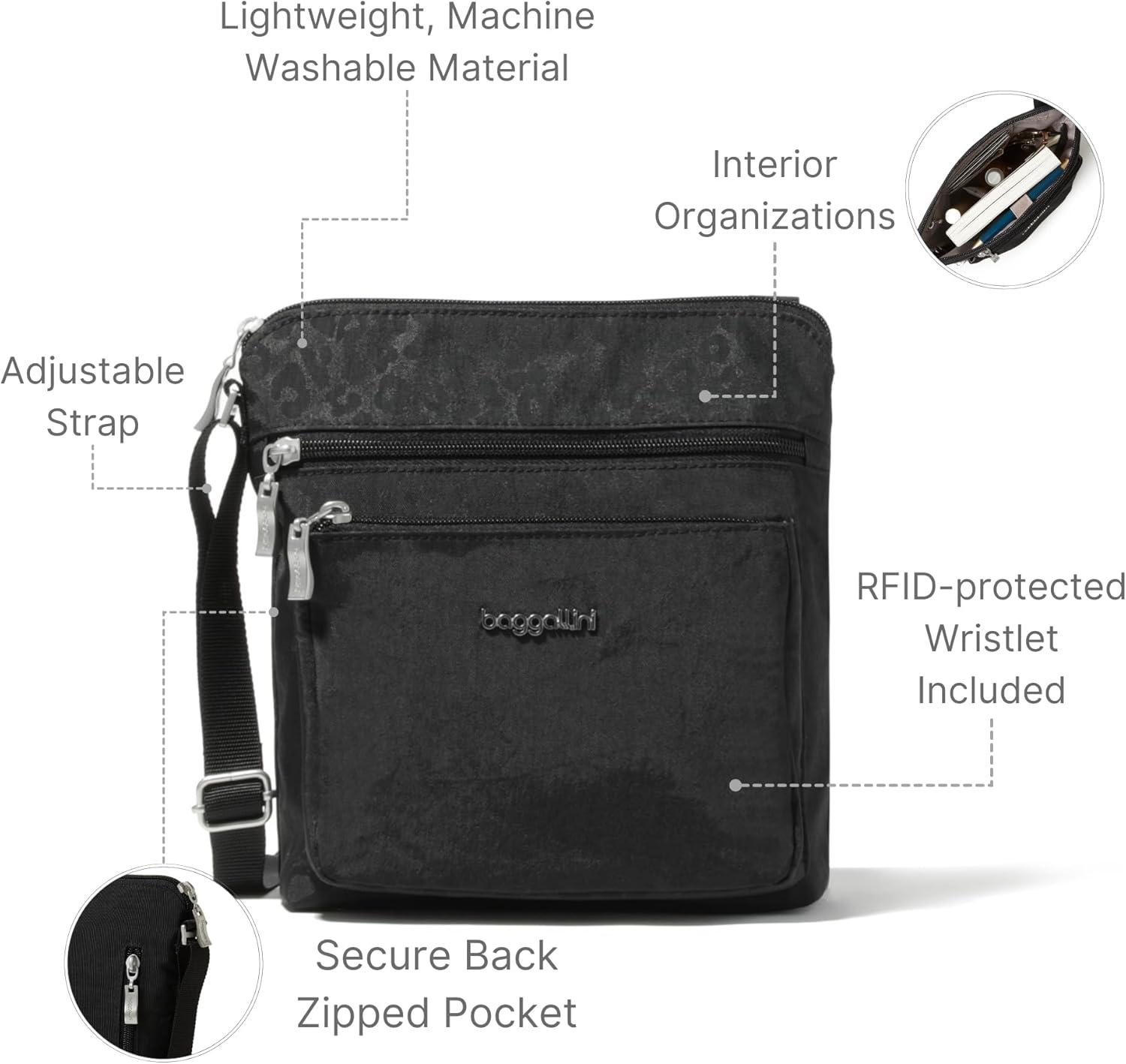 Baggallini Pocket Crossbody Bags for Women 8×8 Small Lightweight Durable Water-Resistant Travel Purse W/RFID(Black Cheetah)