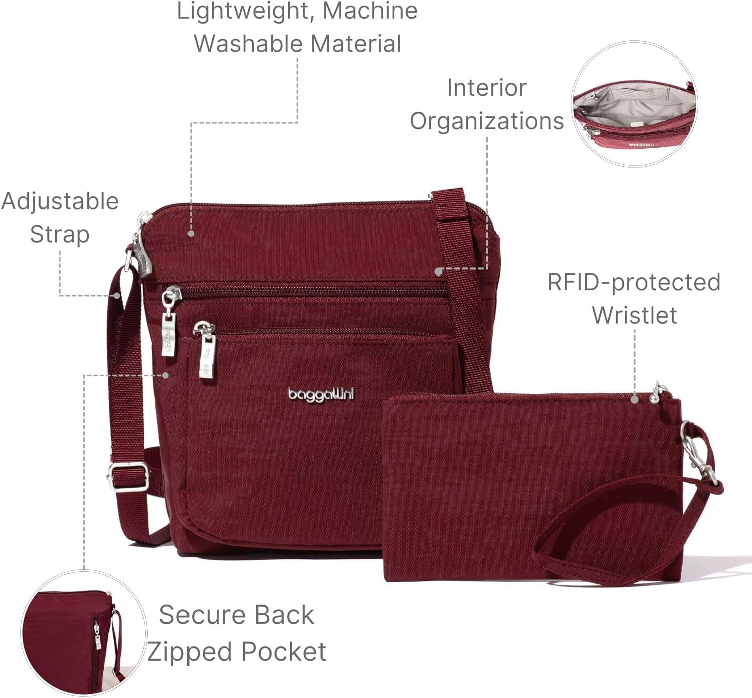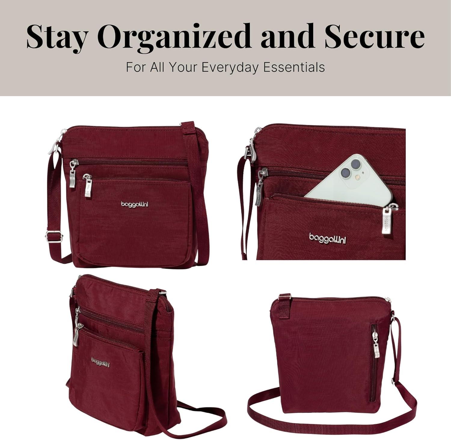 Baggallini Pocket Crossbody Bags for Women 8×8 Small Lightweight Durable Water-Resistant Travel Purse W/RFID(Dark Cherry)