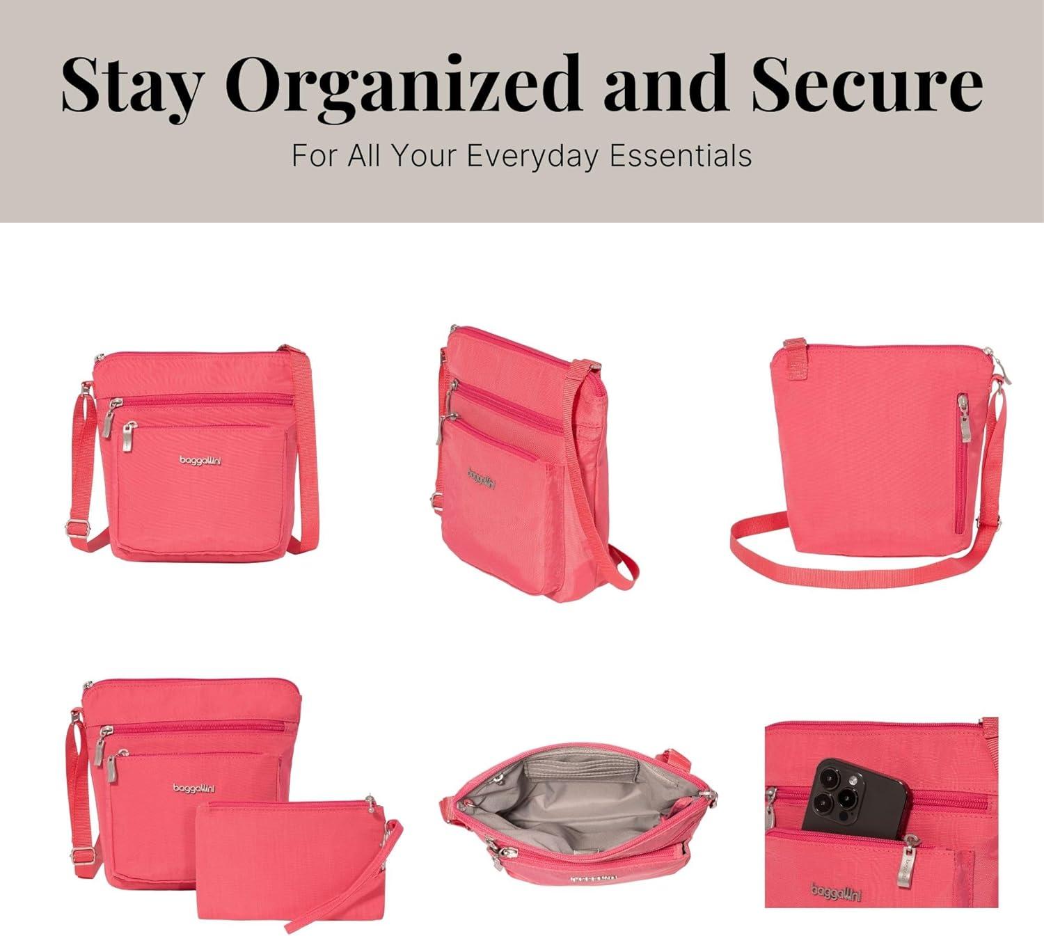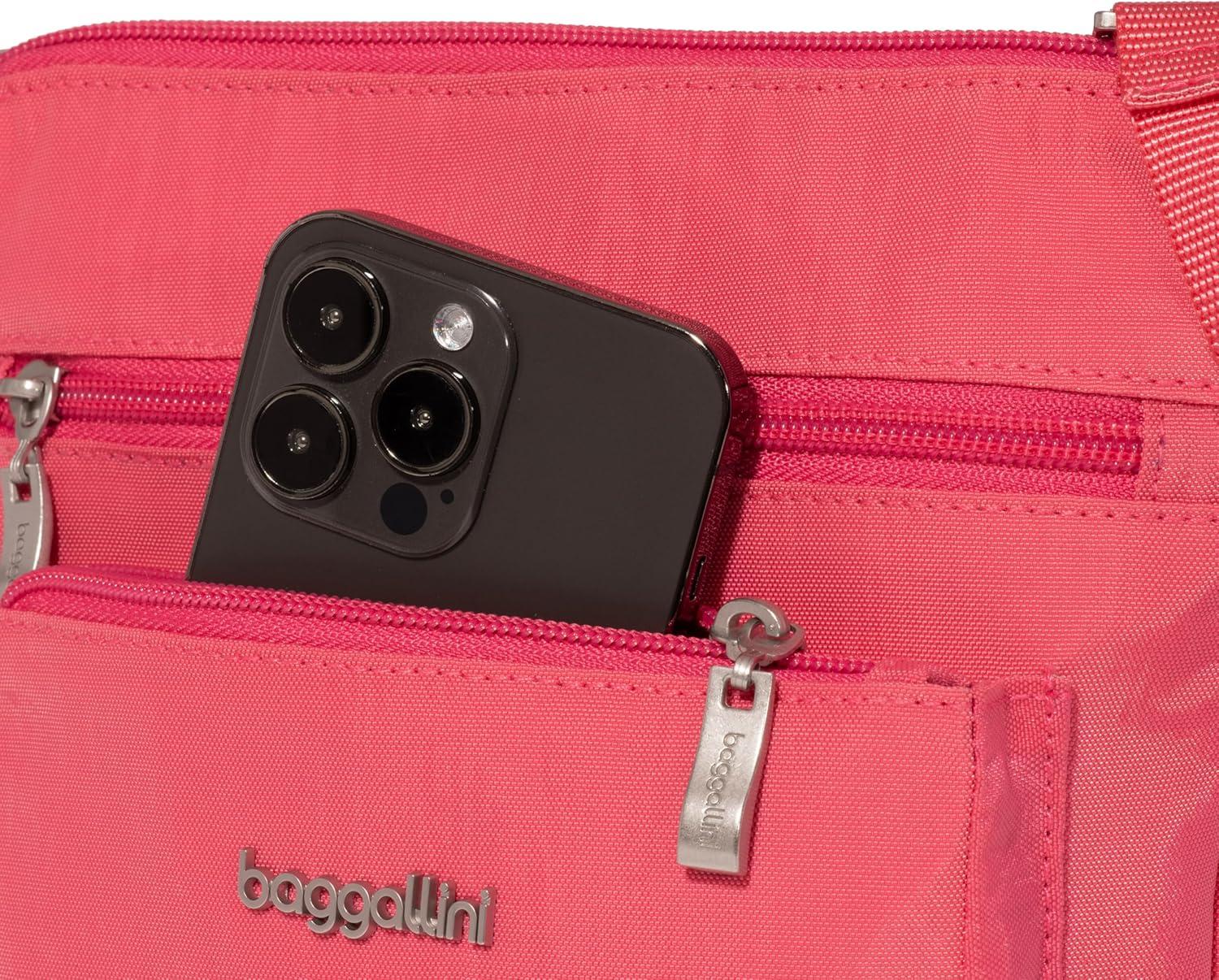 Baggallini Pocket Crossbody Bags for Women 8×8 Small Lightweight Durable Water-Resistant Travel Purse W/RFID(Flamingo)