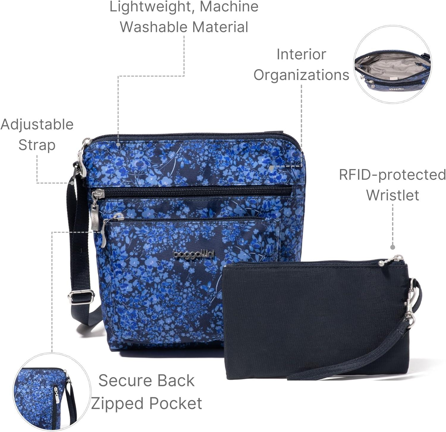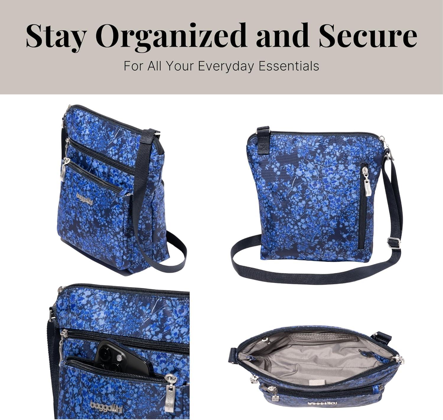 Baggallini Pocket Crossbody Bags for Women 8×8 Small Lightweight Durable Water-Resistant Travel Purse W/RFID(Ink Hydrangea)