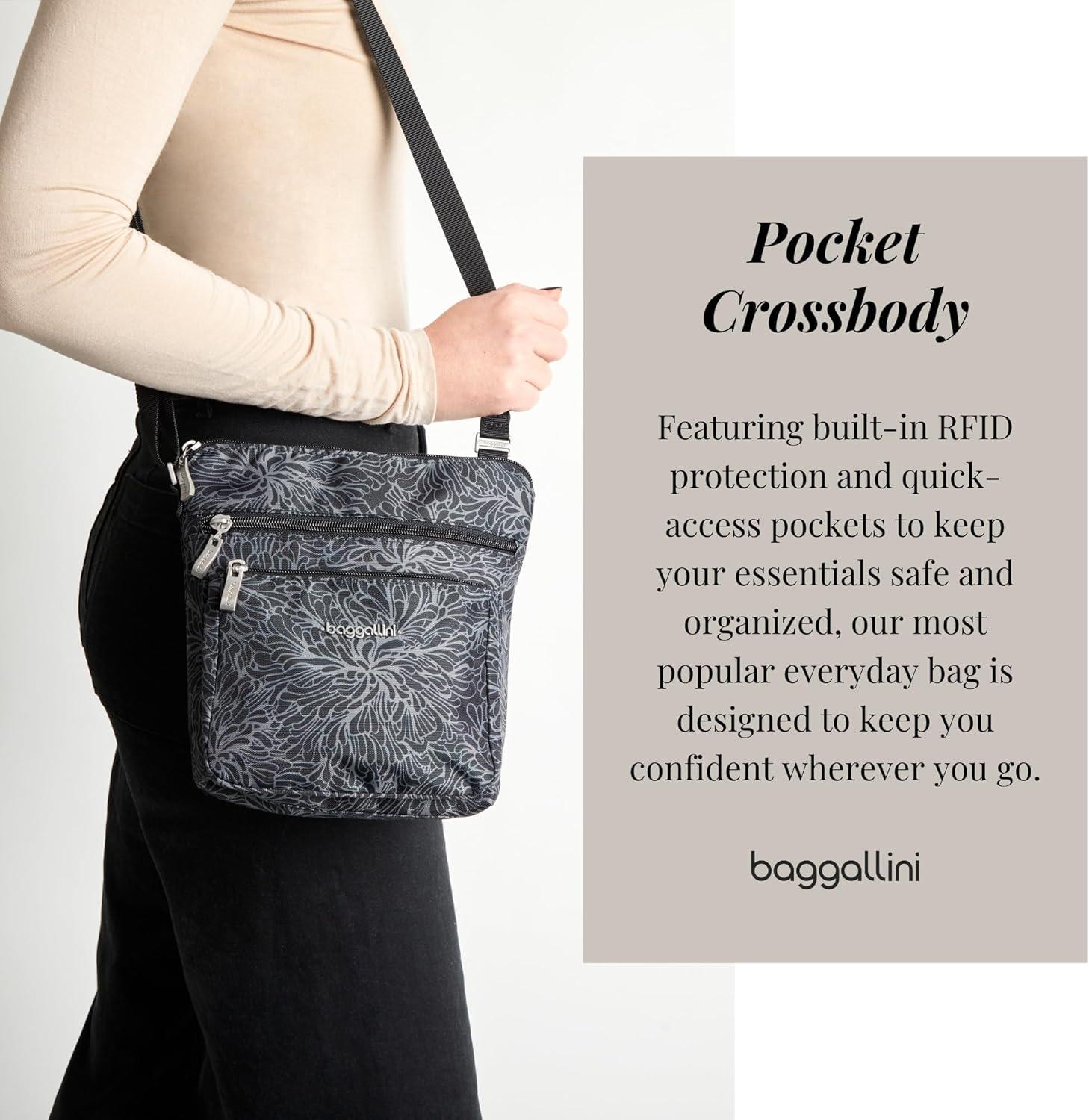 Baggallini Pocket Crossbody Bags for Women 8×8 Small Lightweight Durable Water-Resistant Travel Purse W/RFID(Midnight Blossom)