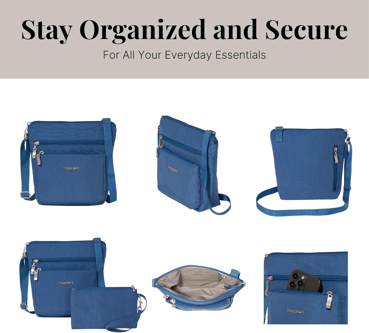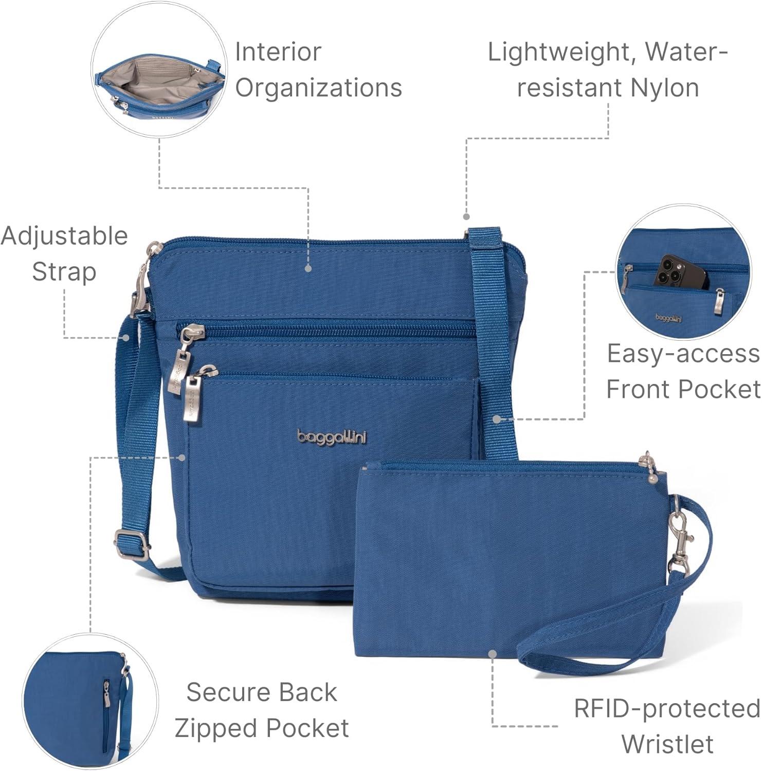 Baggallini Pocket Crossbody Bags for Women 8×8 Small Lightweight Durable Water-Resistant Travel Purse W/RFID(Lapis)
