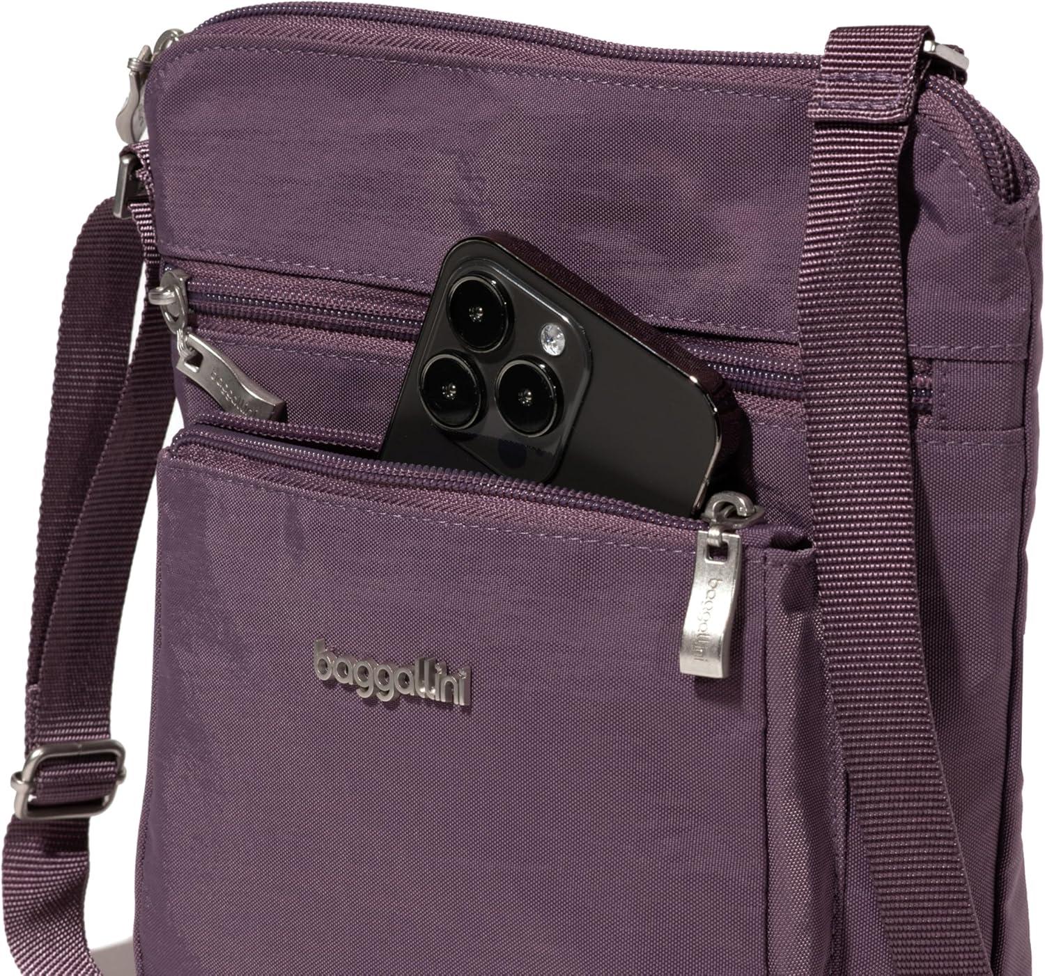 Baggallini Pocket Crossbody Bags for Women 8×8 Small Lightweight Durable Water-Resistant Travel Purse W/RFID(Misty Purple)