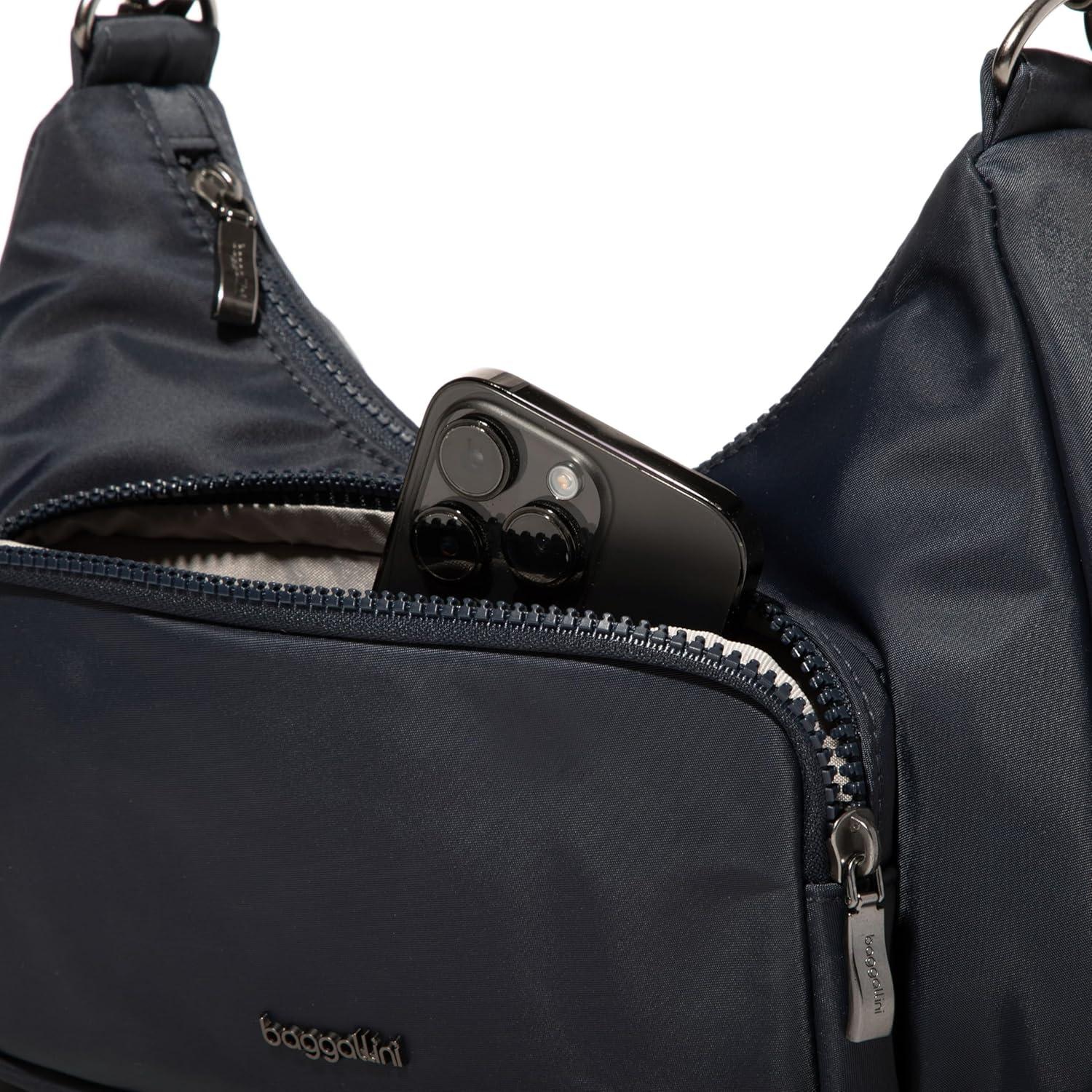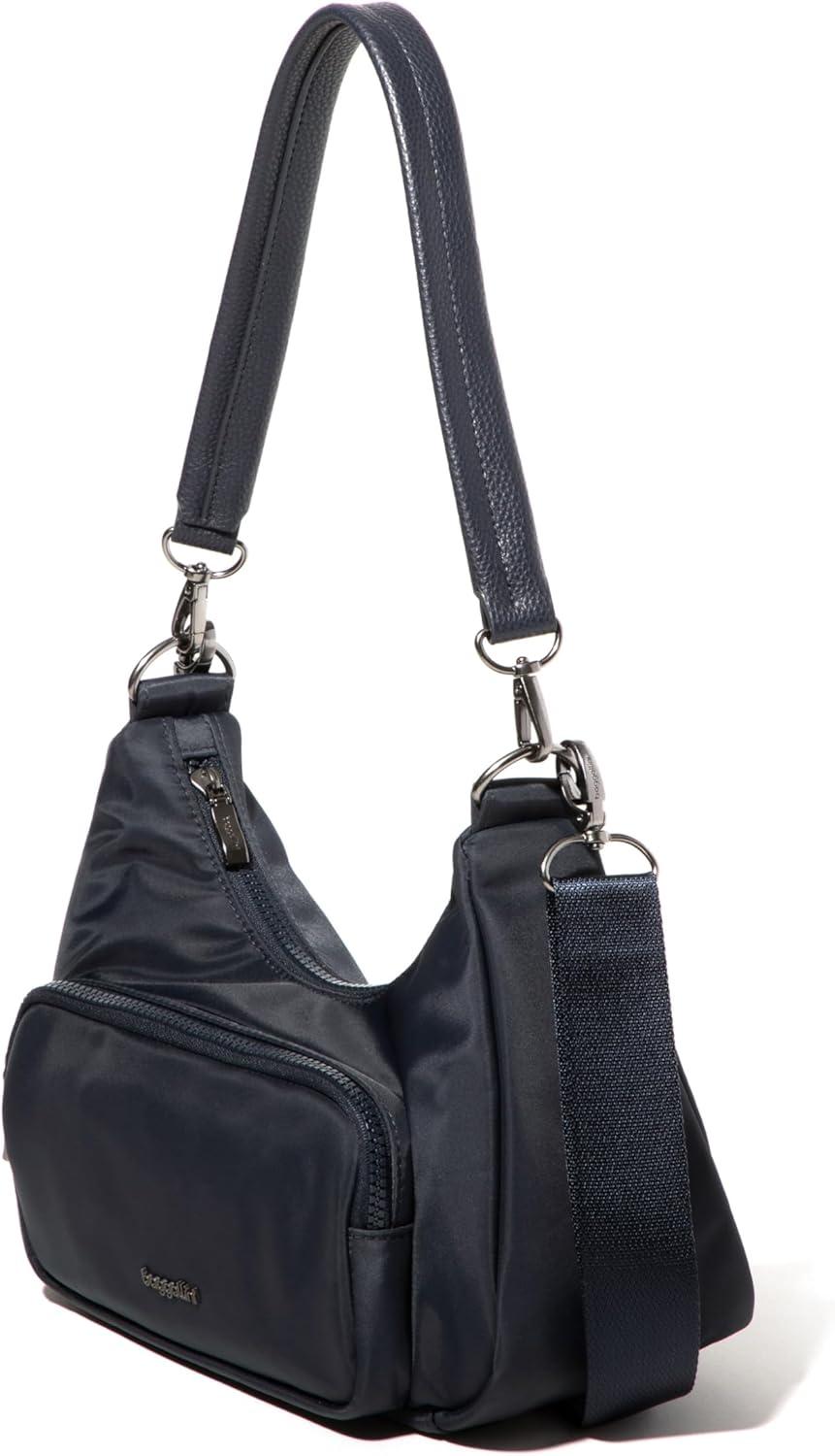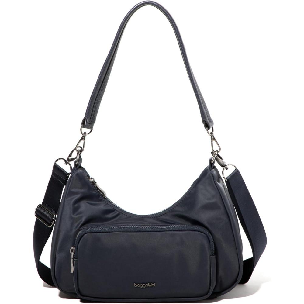 Baggallini Savannah Crossbody 12″x8″ w/RFID Card Holder, Vegan Leather Shoulder Strap Convertible Crossbody for Women(French Navy Twill)