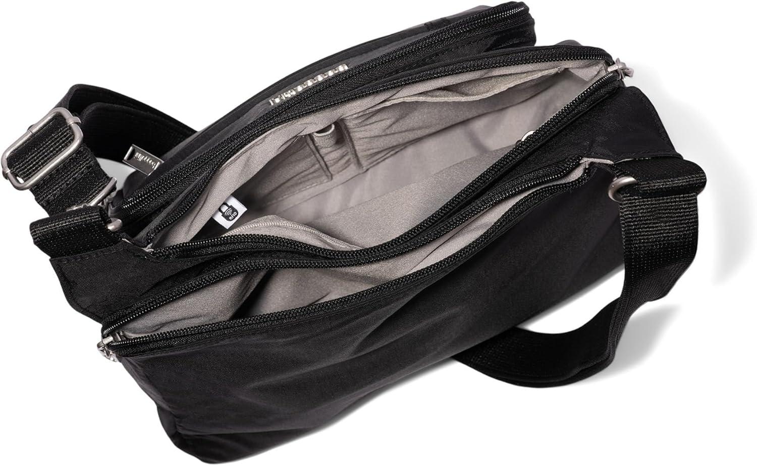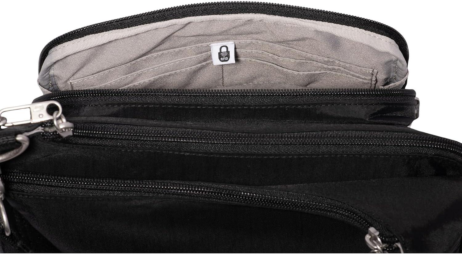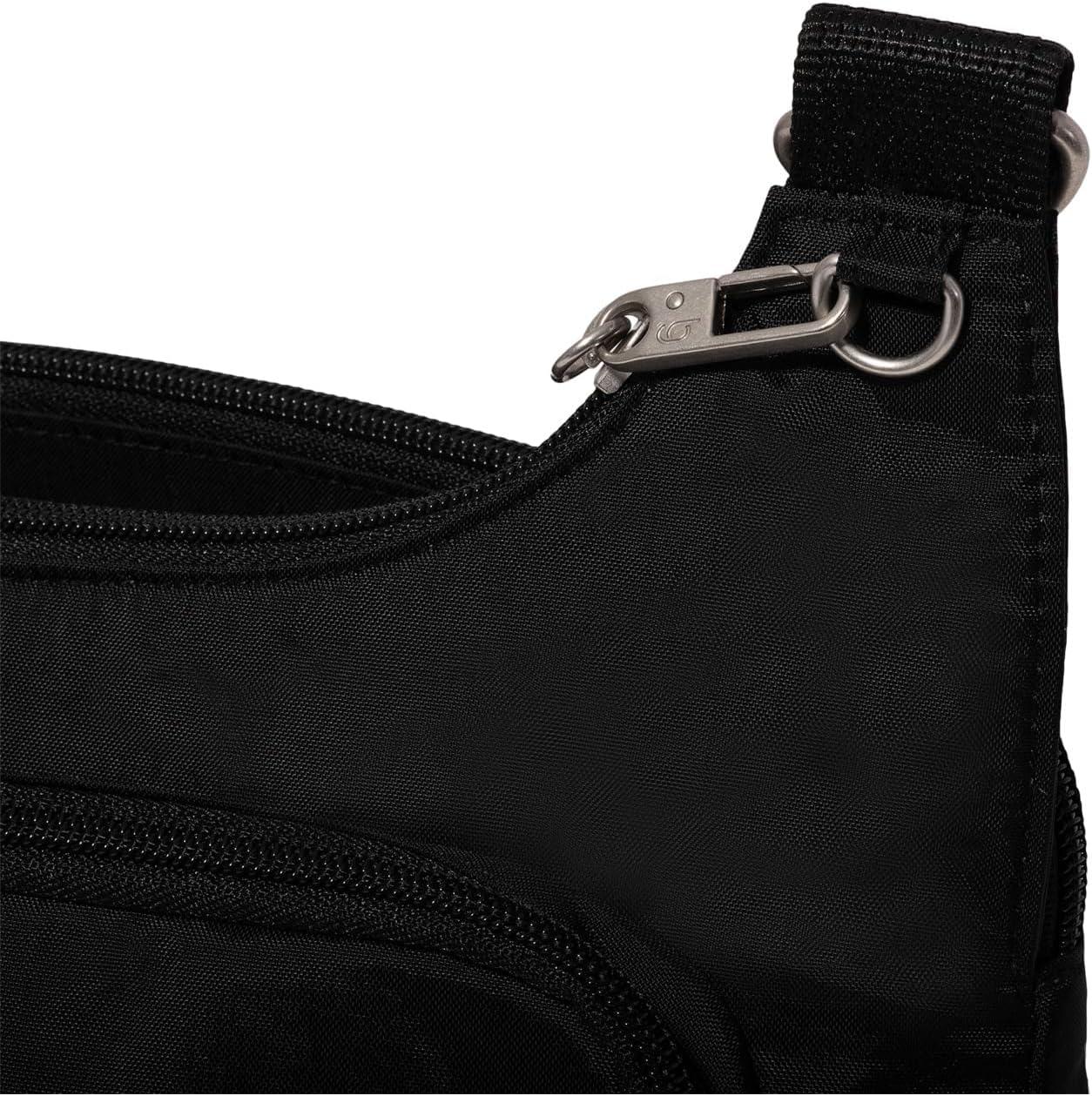 Baggallini Securtex Anti-Theft Crossover Crossbody Bag for Travel 11”w X 8.5”h, RFID, Built-in Wallet, Locking Zippers(Black)