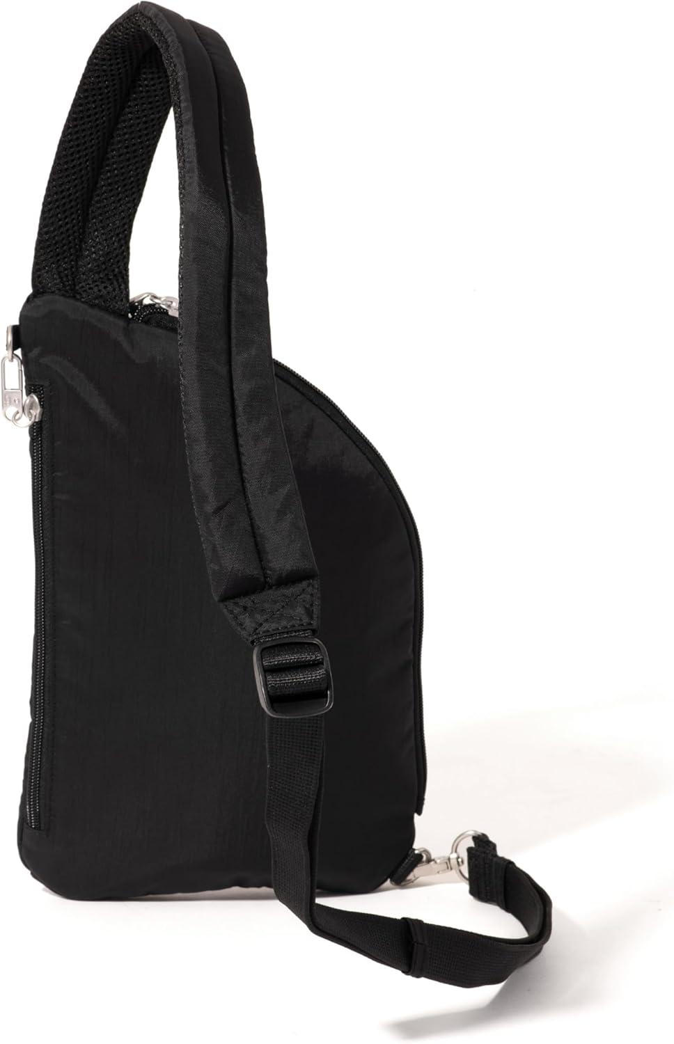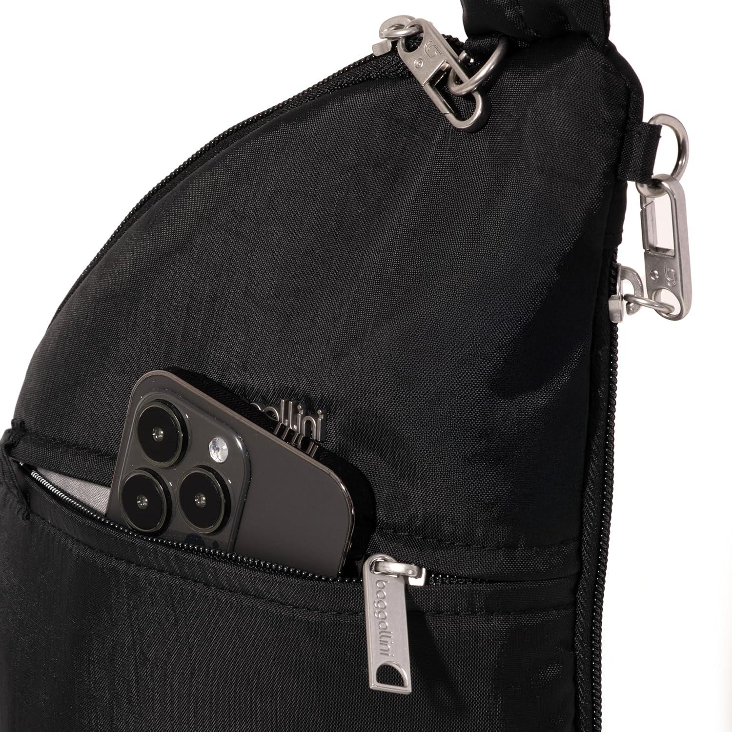 Baggallini Securtex Anti-Theft Half Moon Sling 8″x13″ Crossbody Bags W/RFID, Cut-Resistant Strap, Locking Zippers(Black)