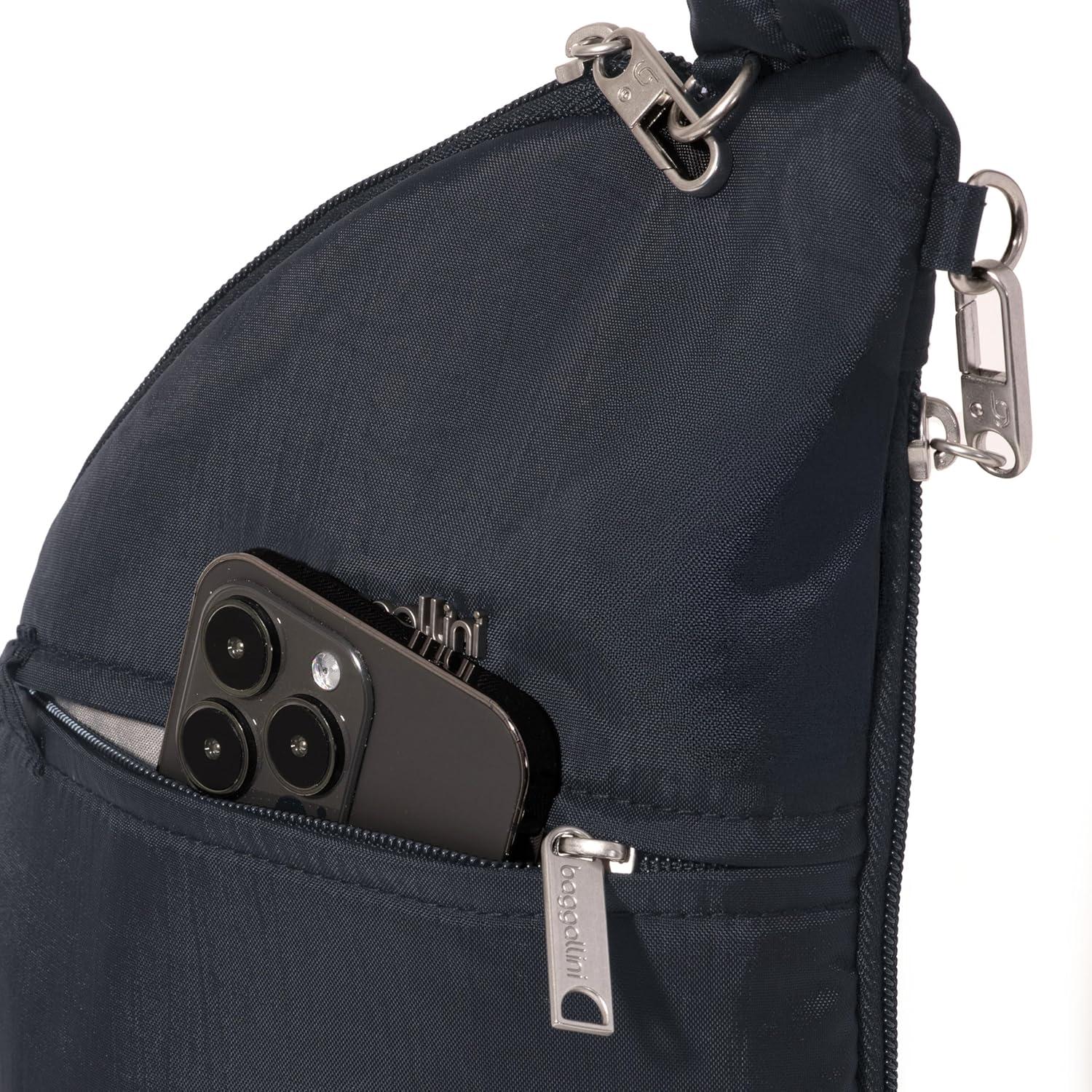 Protect your things—and your peace of mind. This anti-theft sling bag comes complete with a locking zipper, cut-resistant straps, slash-resistant interior fabric, and RFID-blocking credit card slots. For a bit of extra security, the streamlined design can easily be worn under your favorite fit.