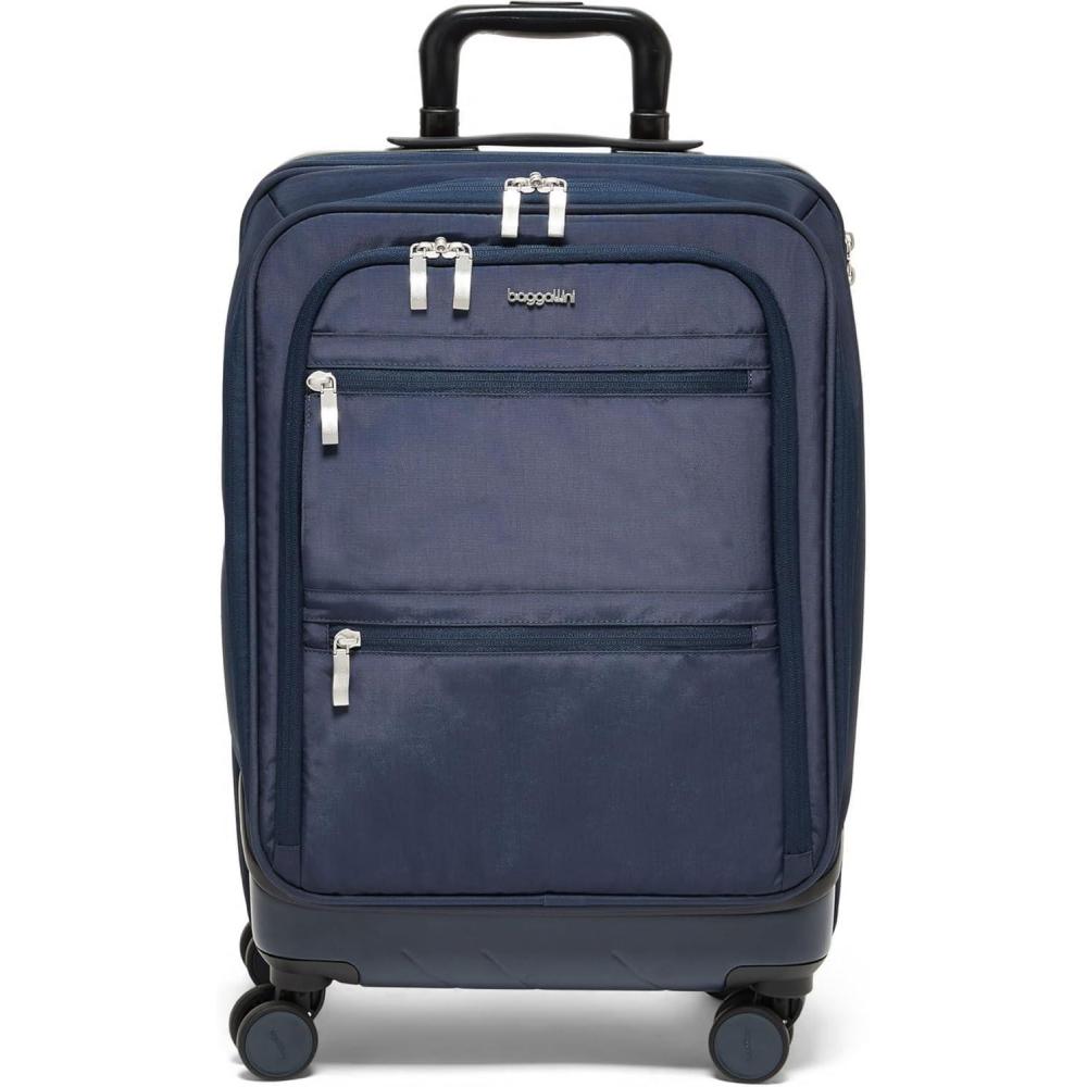Baggallini Set Wave 22” 4 Wheel Hybrid Carry-On Luggage – Lightweight Carry On Suitcase with Wheels(French Navy)