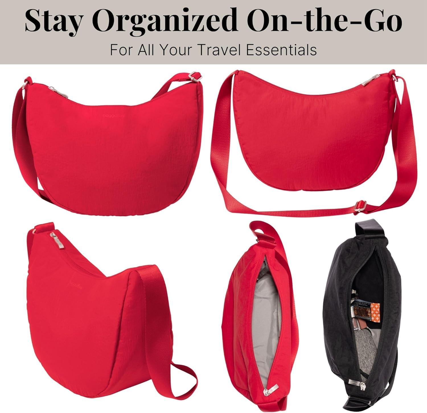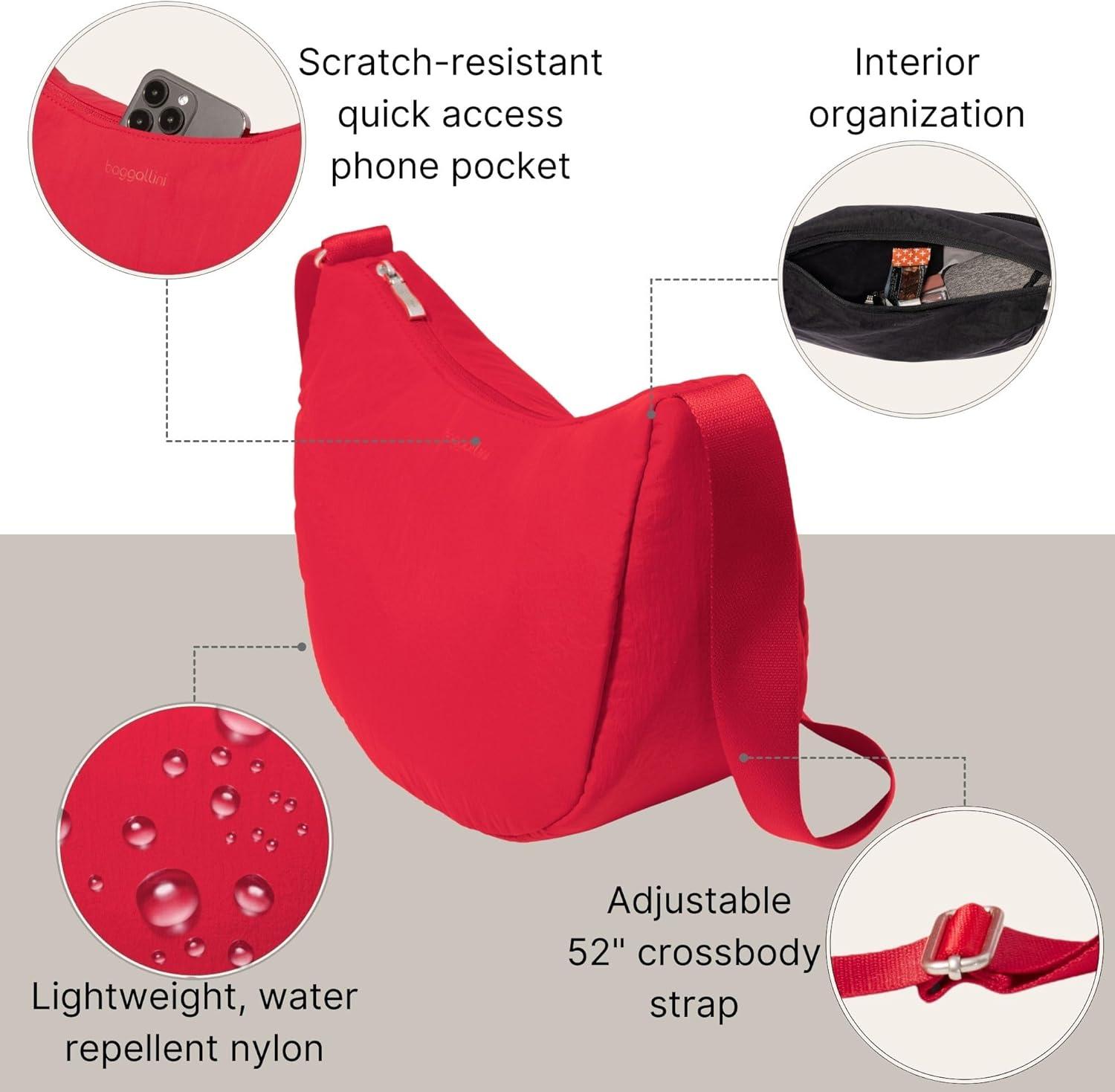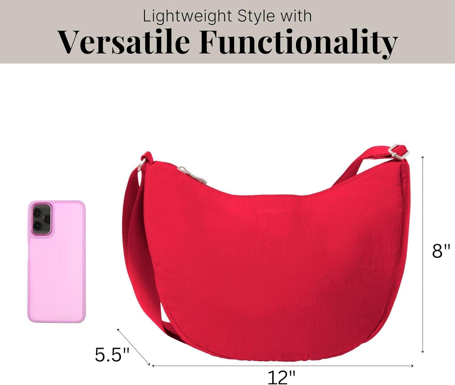 Baggallini Swift Crescent Crossbody Bag for Women – Lightweight 12″x8″ Travel Purse Handbag(B- Lite Scarlet Red)
