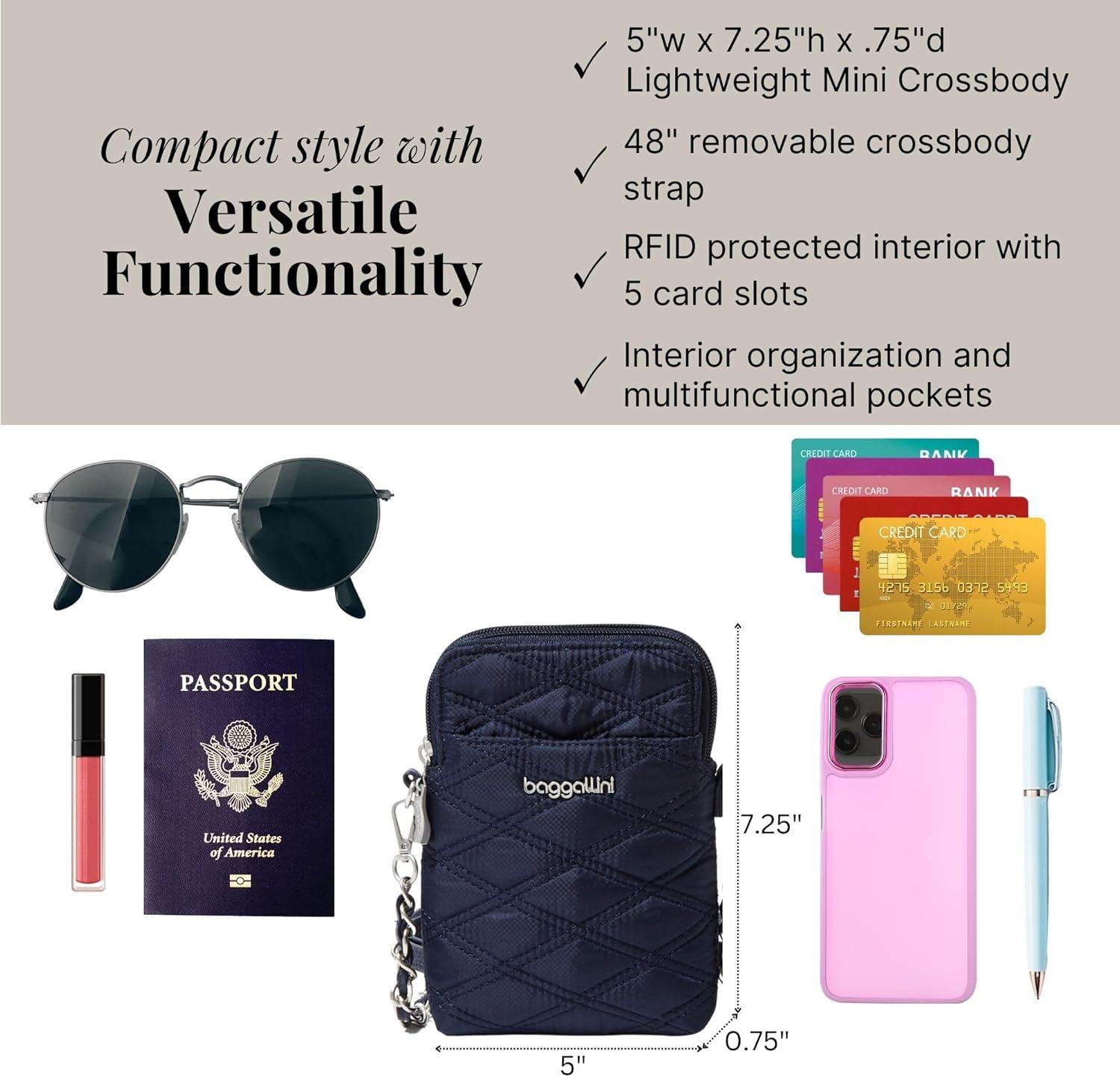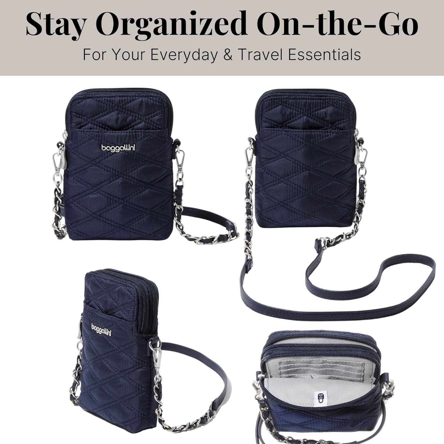 Baggallini The New Classic Collection Take Two RFID Bryant Crossbody(French Navy Quilt With Chain)