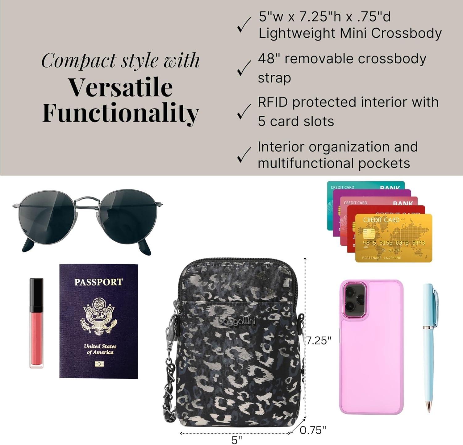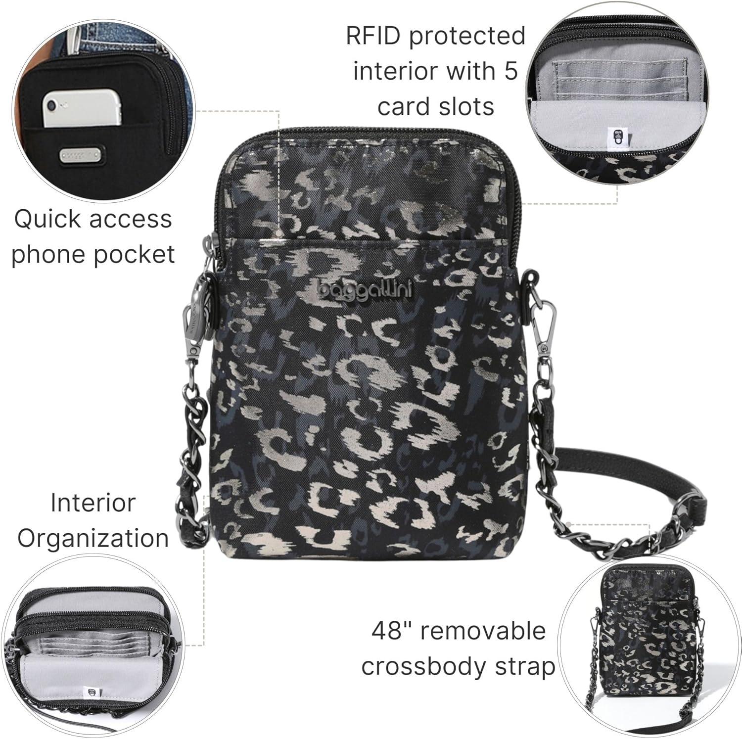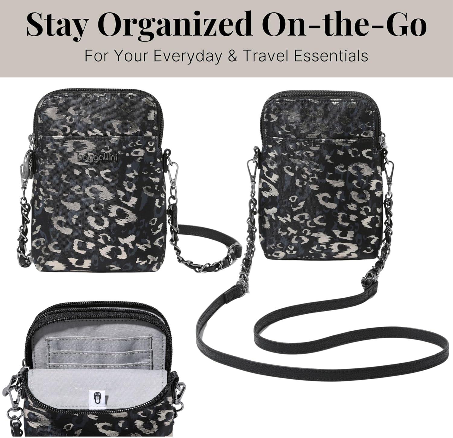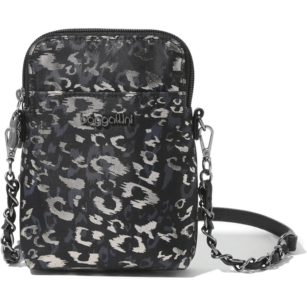Baggallini The New Classic Collection Take Two RFID Bryant Crossbody(Gunmetal Metallic Cheetah With Chain)
