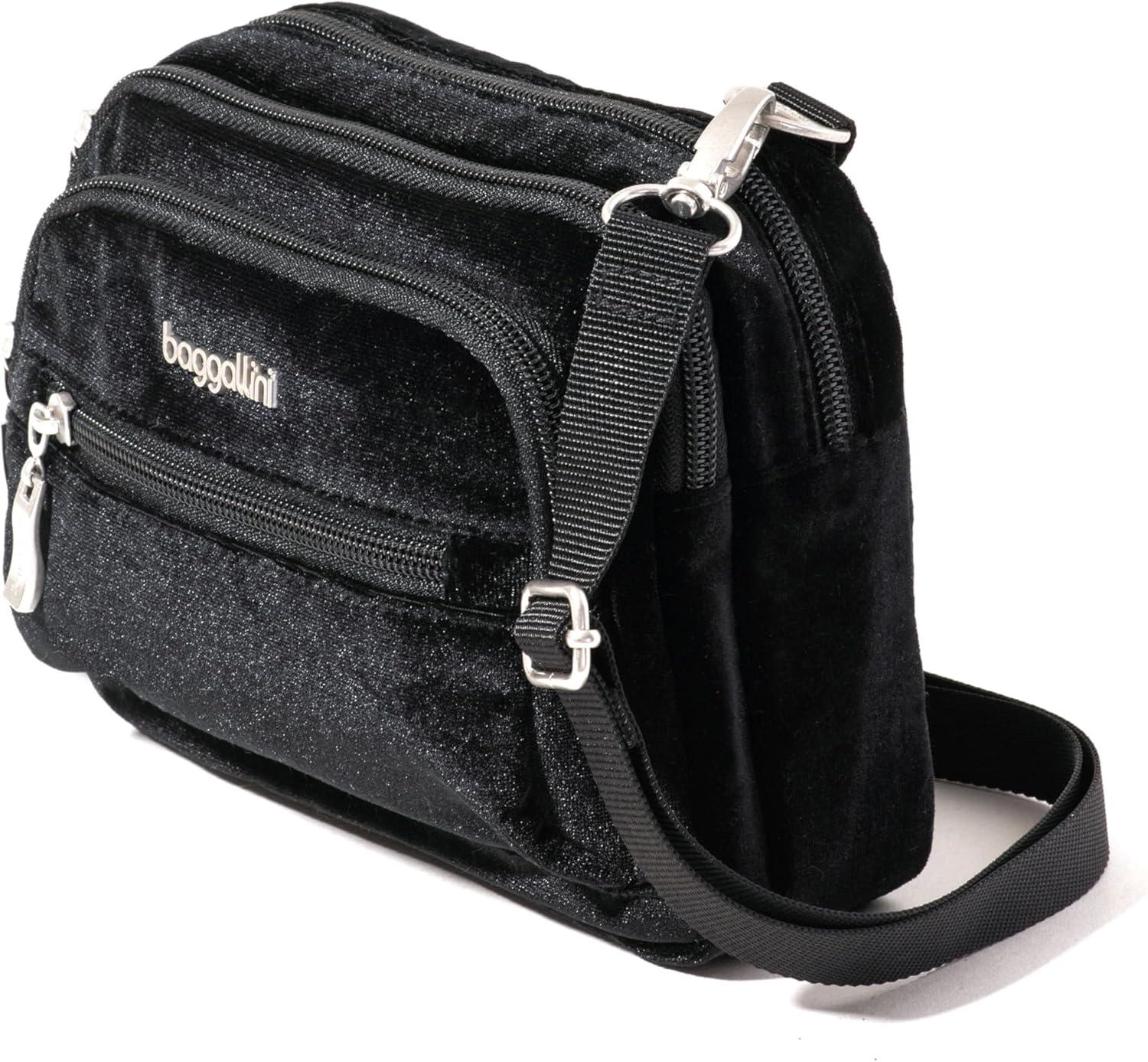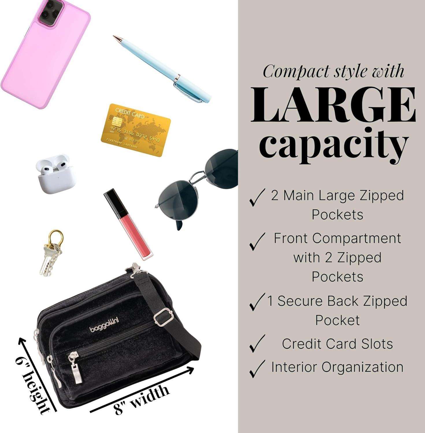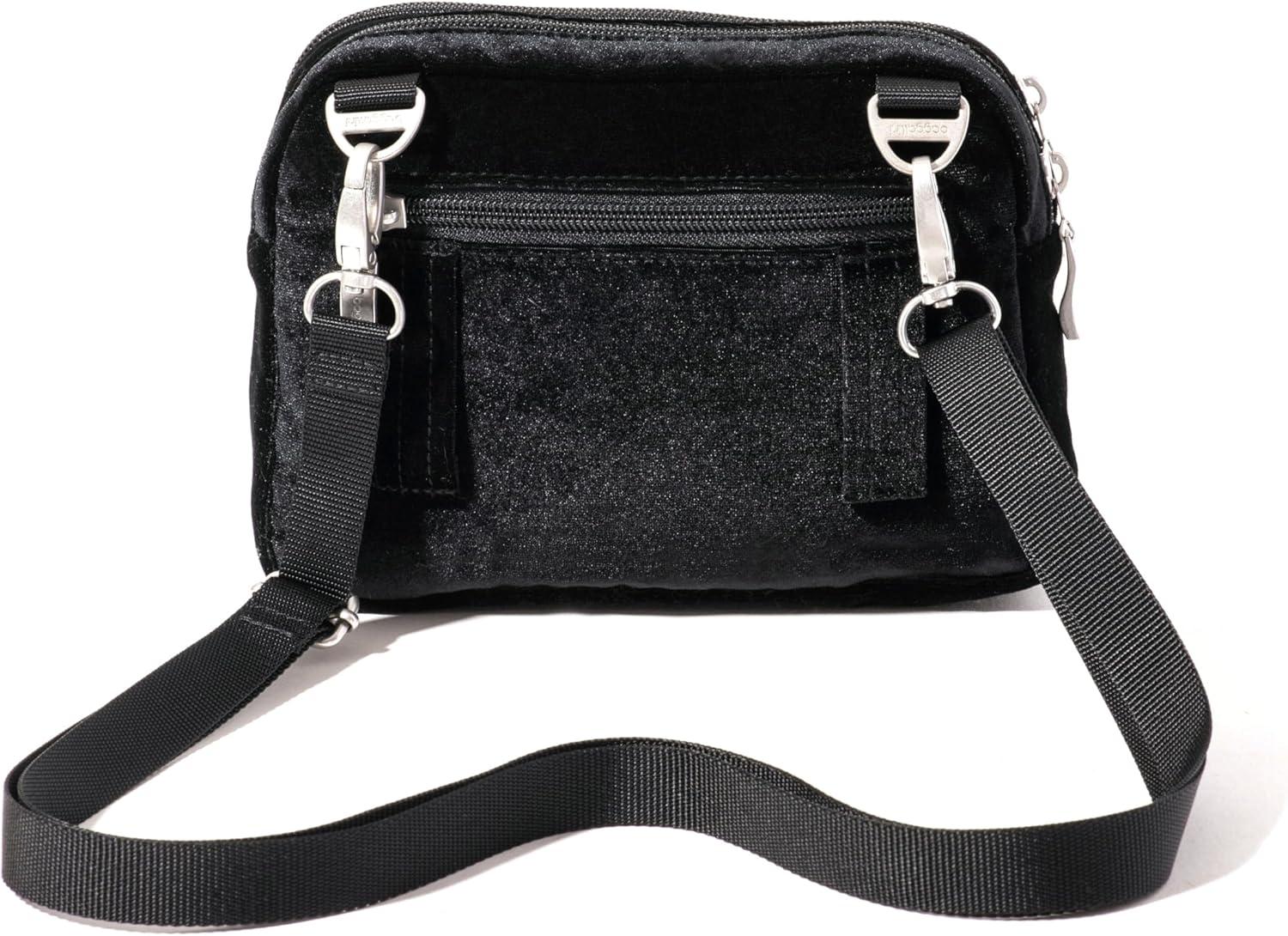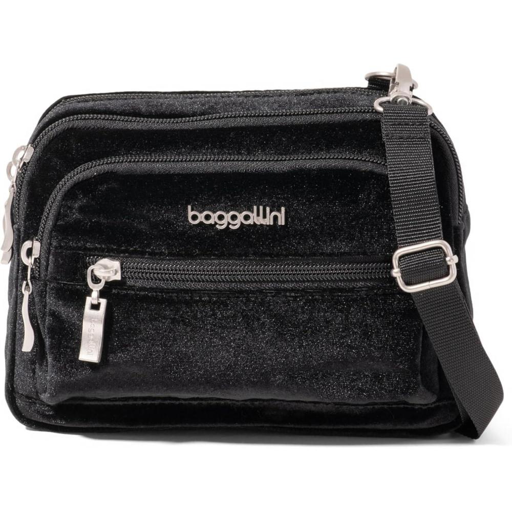 Baggallini Triple Zip Small Crossbody Bag for Women – 8×6 Lightweight Convertible Fanny Pack Belt Bag(Black Velvet)