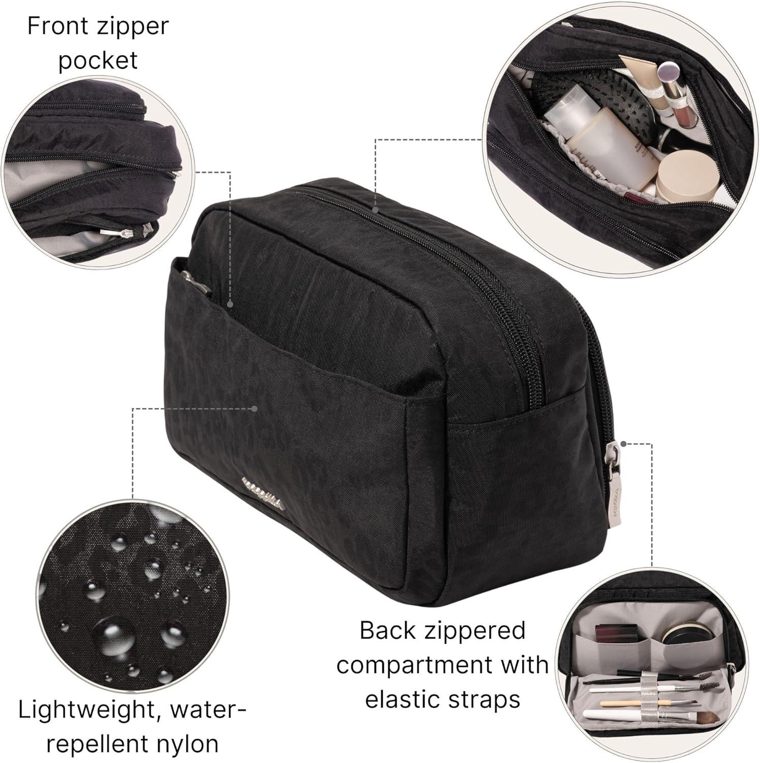 Your beauty routine, all zipped up in this compact travel makeup bag, designed for streamlined cosmetic storage wherever life takes you. Perfect for commuting, traveling, gym visits, or quick post-work touch-ups, this portable cosmetic case keeps your essentials neat and accessible. Inside, elastic brush loops securely hold makeup brushes, eyeliner, or mascara, while the spacious main compartment is ideal for lip gloss, foundation, powder, and skincare products. Lightweight and travel-friendly, this makeup organizer fits easily into your purse, tote bag, backpack, or carry-on luggage. A must-have for makeup lovers and beauty enthusiasts, it’s also great as a small toiletry bag or cosmetic pouch for everyday use, vacations, cruises, or weekend getaways.