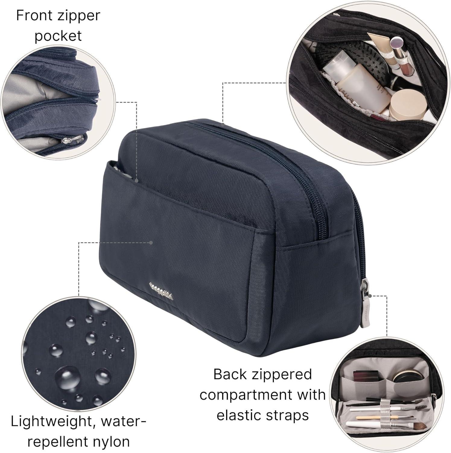 Your beauty routine, all zipped up in this compact travel makeup bag, designed for streamlined cosmetic storage wherever life takes you. Perfect for commuting, traveling, gym visits, or quick post-work touch-ups, this portable cosmetic case keeps your essentials neat and accessible. Inside, elastic brush loops securely hold makeup brushes, eyeliner, or mascara, while the spacious main compartment is ideal for lip gloss, foundation, powder, and skincare products. Lightweight and travel-friendly, this makeup organizer fits easily into your purse, tote bag, backpack, or carry-on luggage. A must-have for makeup lovers and beauty enthusiasts, it’s also great as a small toiletry bag or cosmetic pouch for everyday use, vacations, cruises, or weekend getaways.