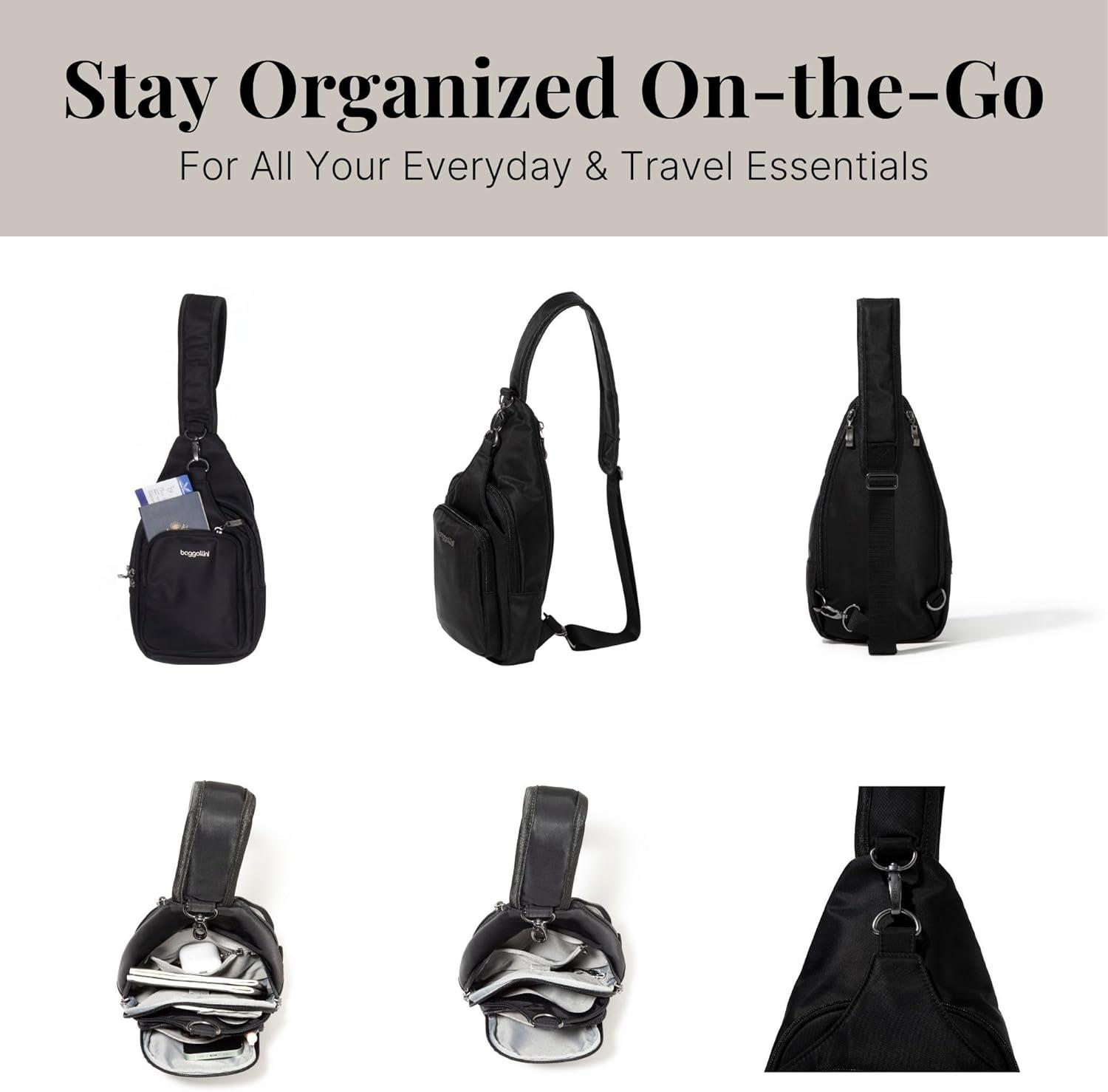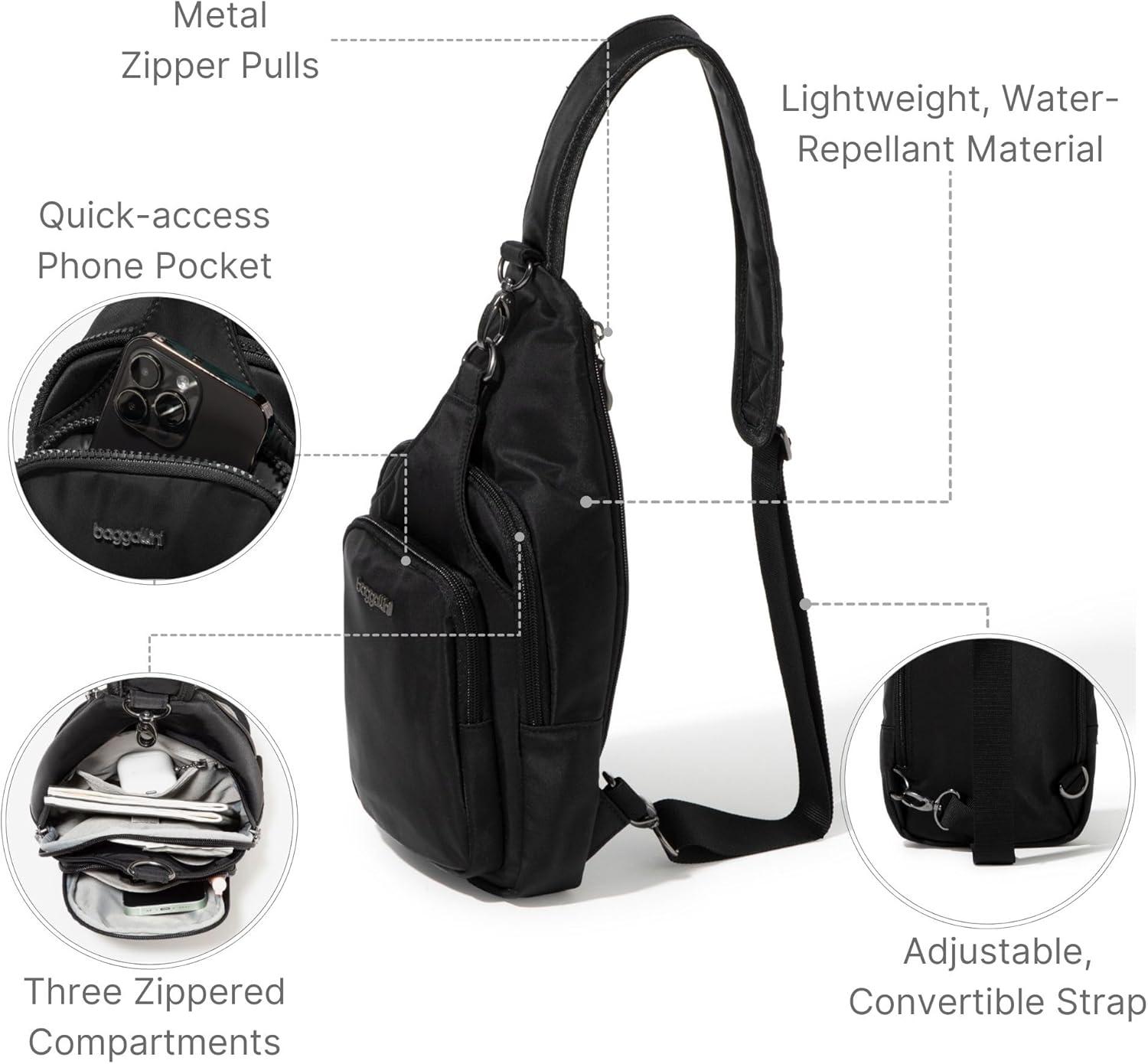 Baggallini Women’s Central Park Sling 12″x7″ Crossbody Bag W/Convertible Adjustable Shoulder Strap(Black)