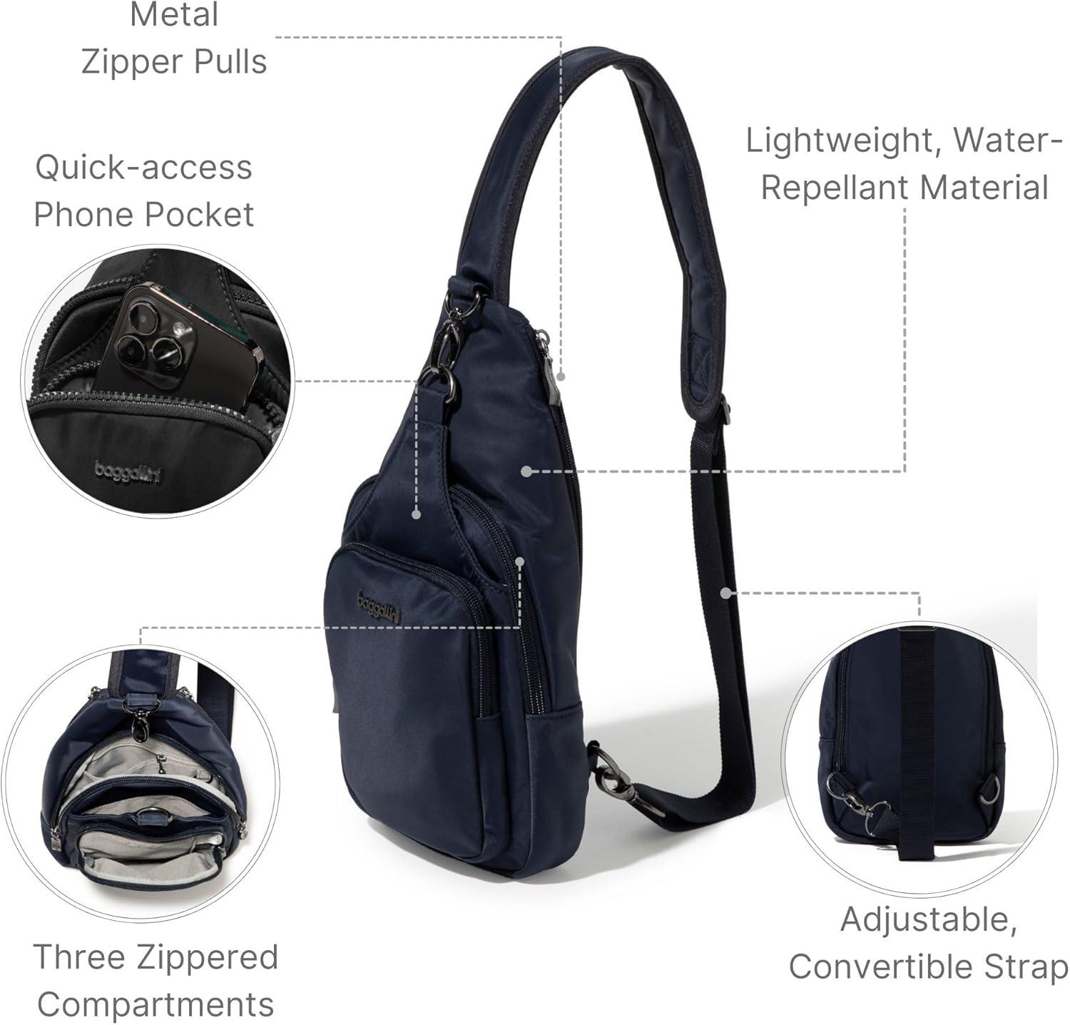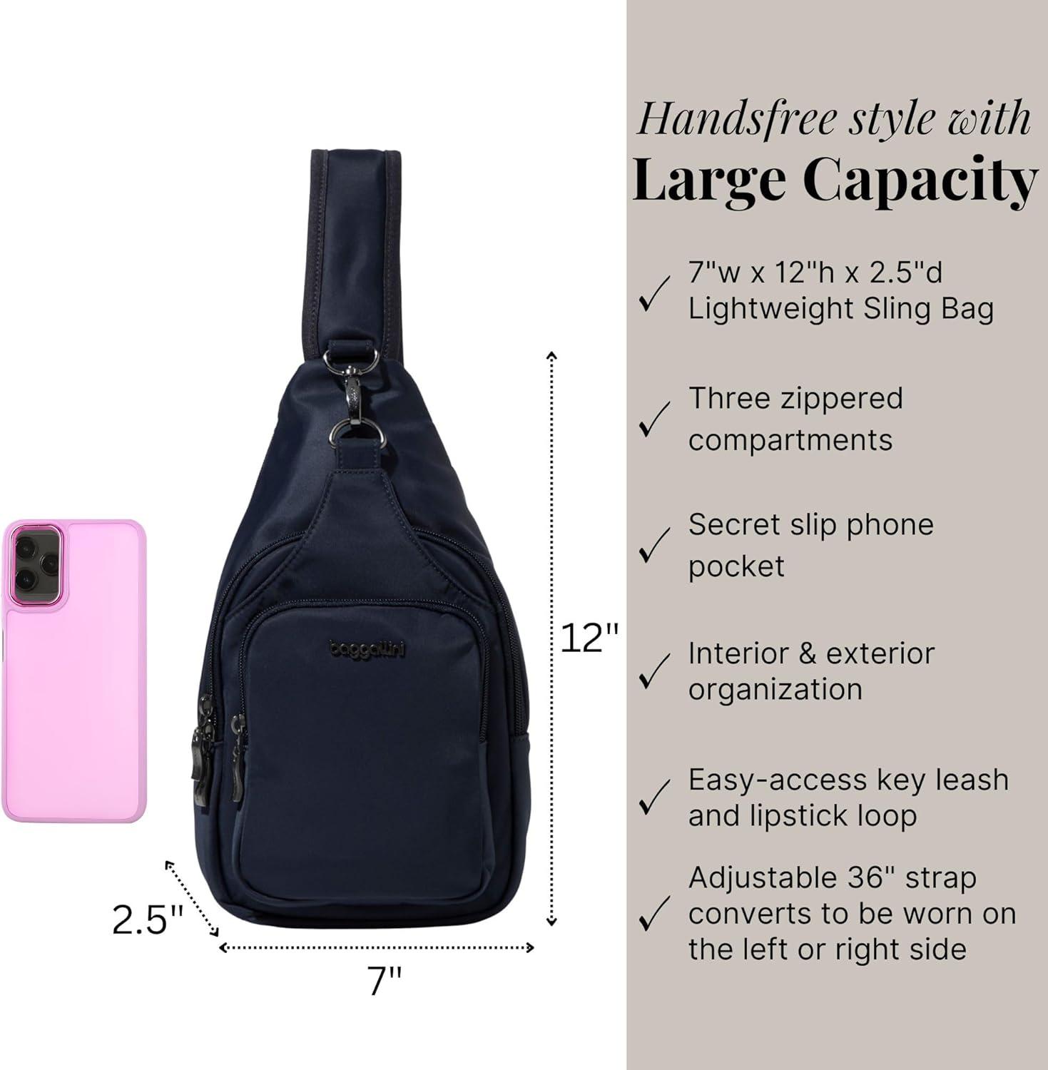 Baggallini Women’s Central Park Sling 12″x7″ Crossbody Bag W/Convertible Adjustable Shoulder Strap(French Navy)