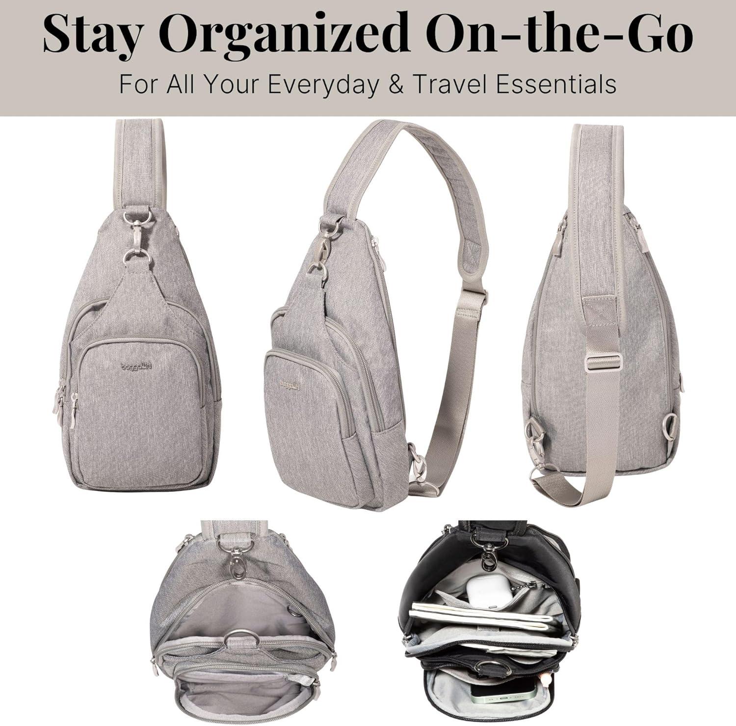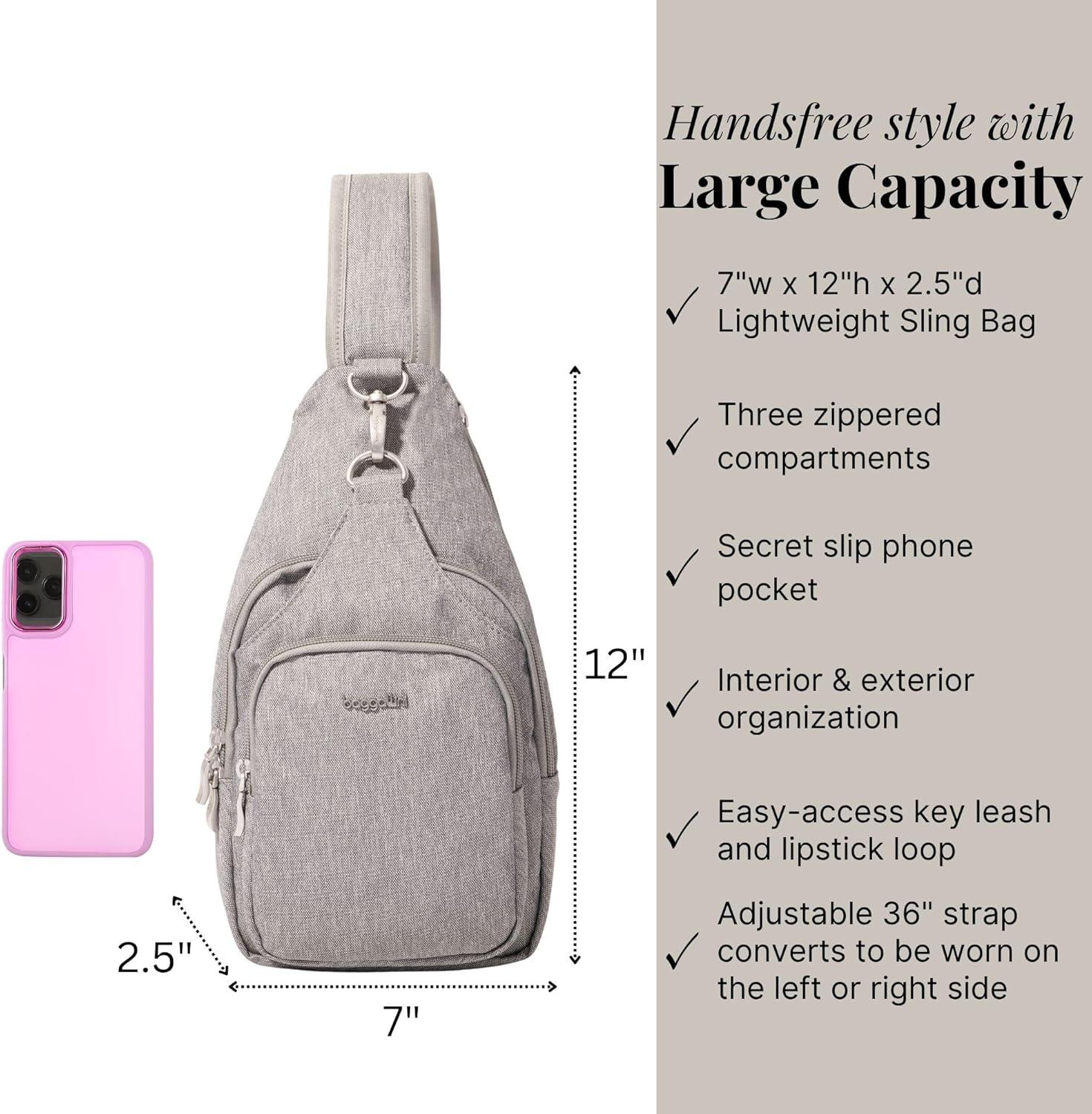 Baggallini Women’s Central Park Sling 12″x7″ Crossbody Bag W/Convertible Adjustable Shoulder Strap(Stone Heritage)