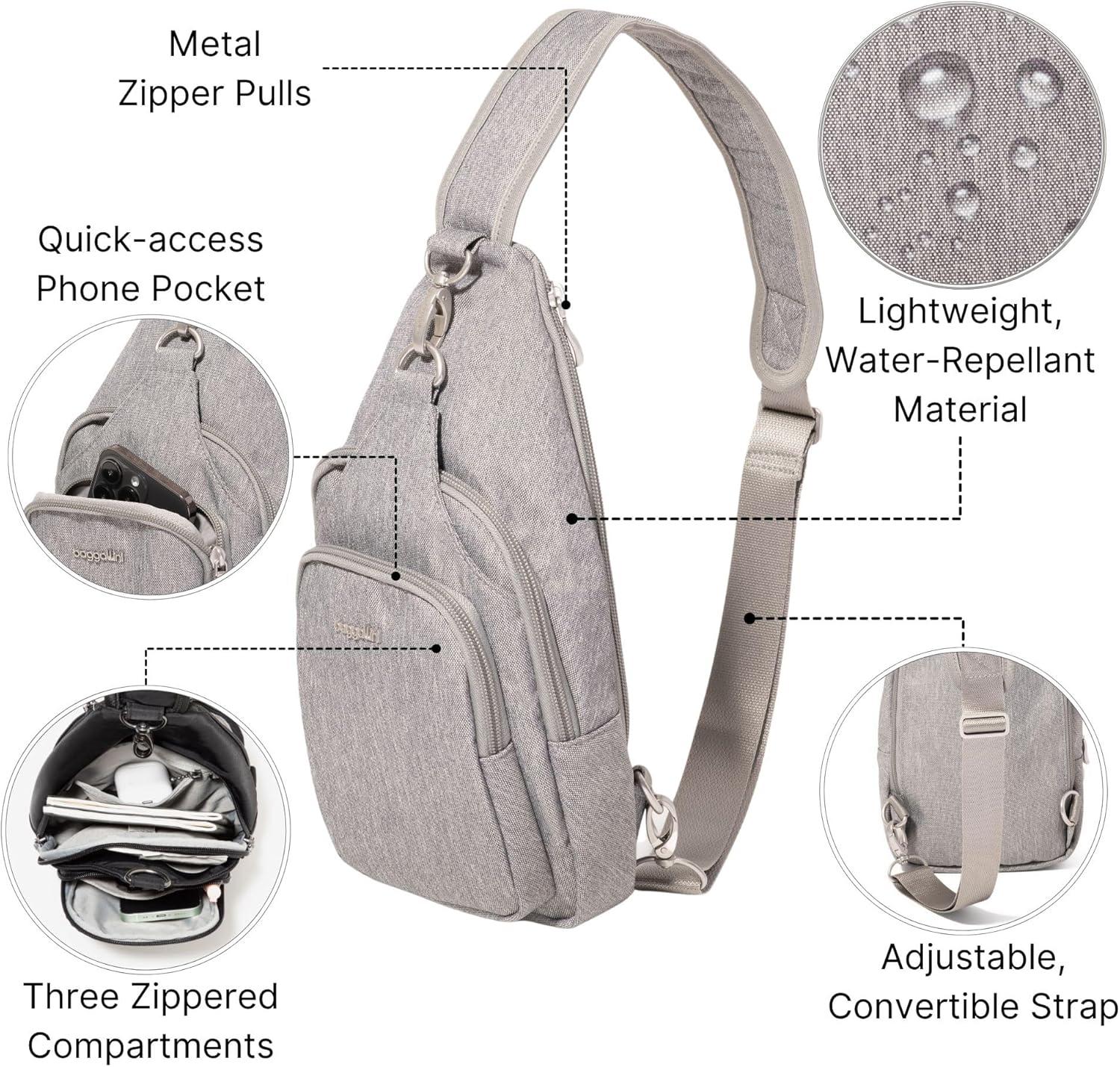 Baggallini Women’s Central Park Sling 12″x7″ Crossbody Bag W/Convertible Adjustable Shoulder Strap(Smoke)