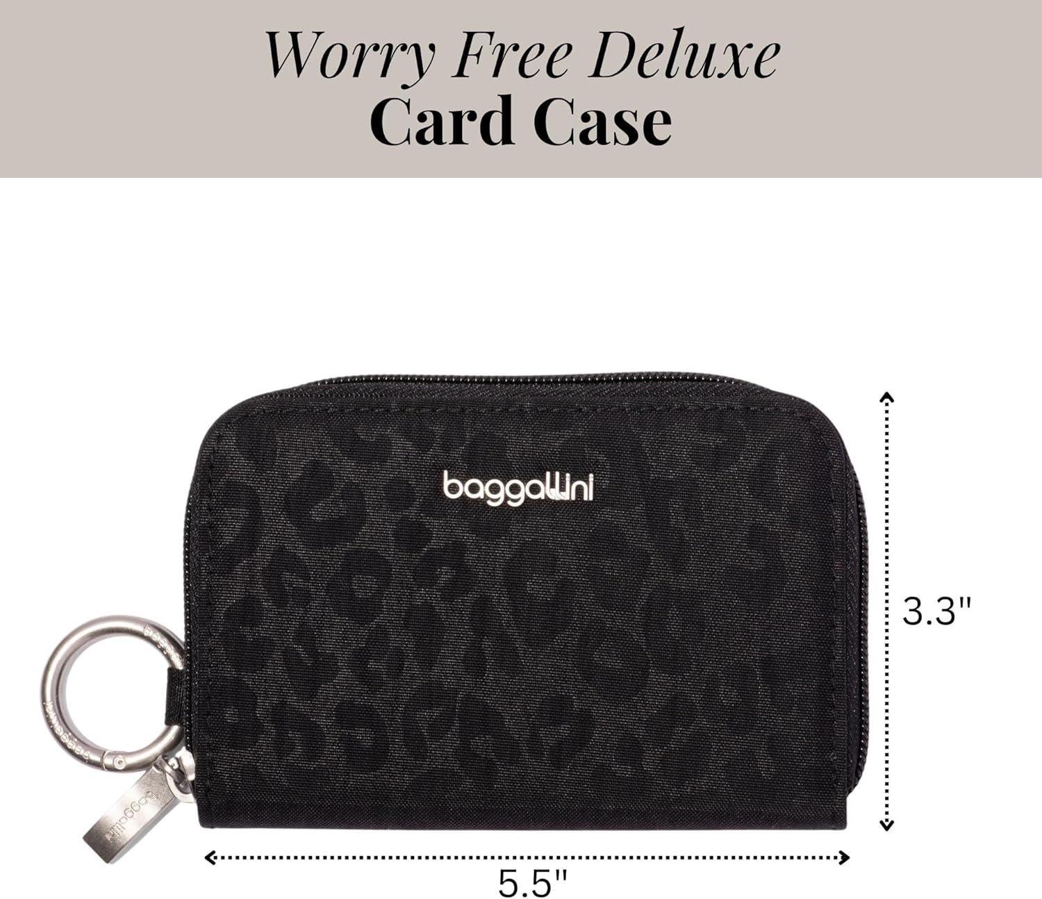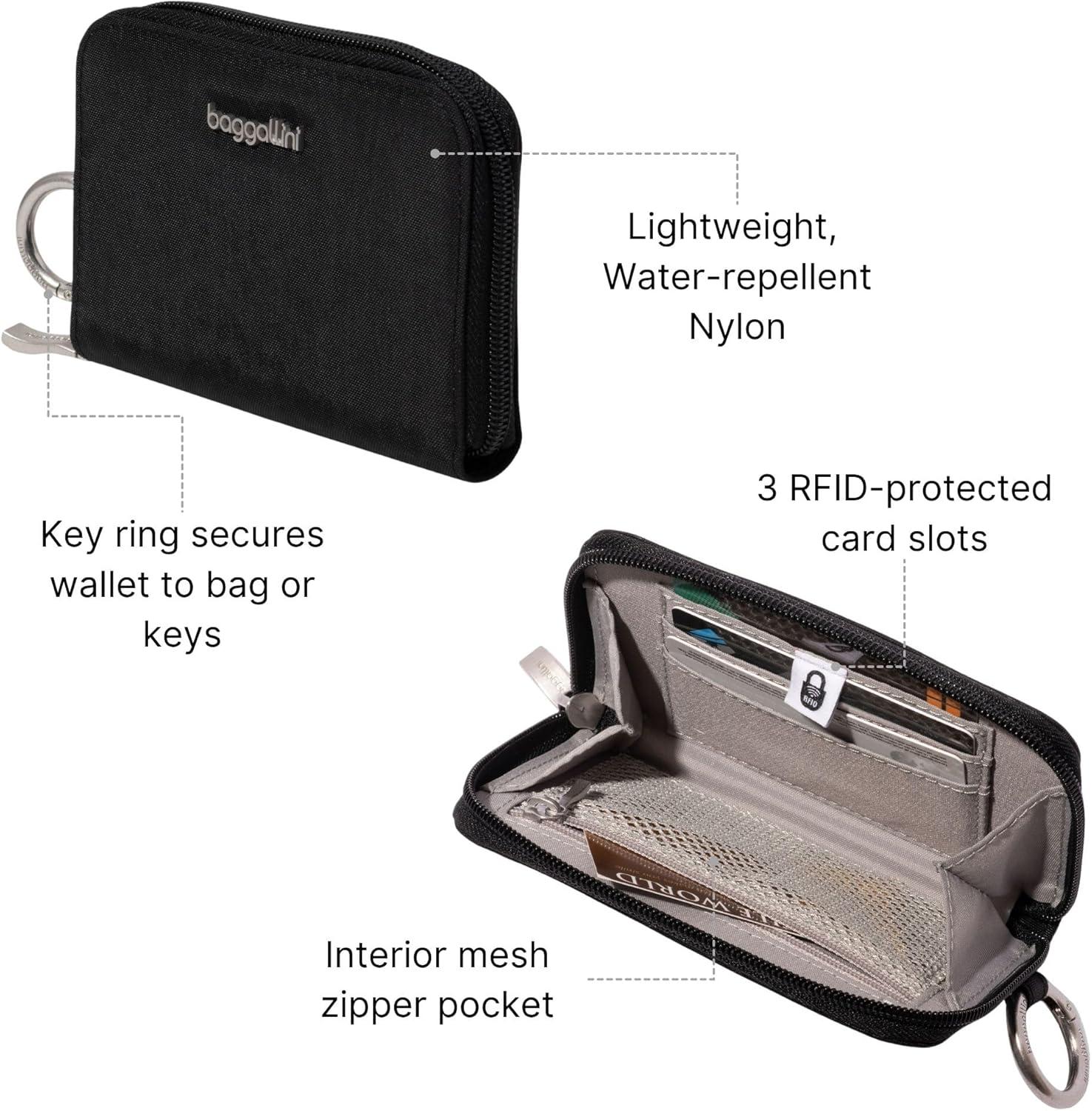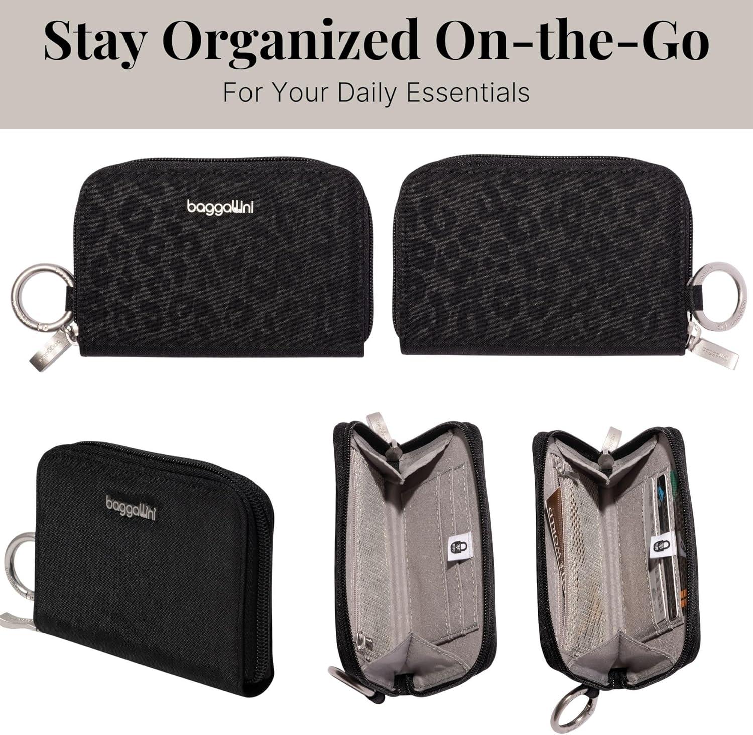 Measuring just 5.5″ wide x 3.3″ high x 0.78″ deep and weighing only 3 oz, this mini card holder wallet fits comfortably in any handbag, backpack, or coat pocket. Use it as a small zipper wallet, credit card case for women, or keychain wallet—it’s the ultimate compact solution for staying organized in style. Stay organized and protected with this sleek and compact women’s RFID card case, designed for convenience without sacrificing style. Whether you're running errands, traveling light, or heading out for the night, this slim wallet with key ring keeps your essentials secure and easily accessible. Crafted with practicality in mind, it features three RFID-blocking card slots to help shield your credit cards and ID from electronic theft—making it a perfect choice for travel or everyday use. The interior mesh zipper pocket is ideal for holding coins, folded cash, or other small valuables, while the built-in key ring lets you clip the case to your keys, bag, or lanyard for grab-and-go ease.