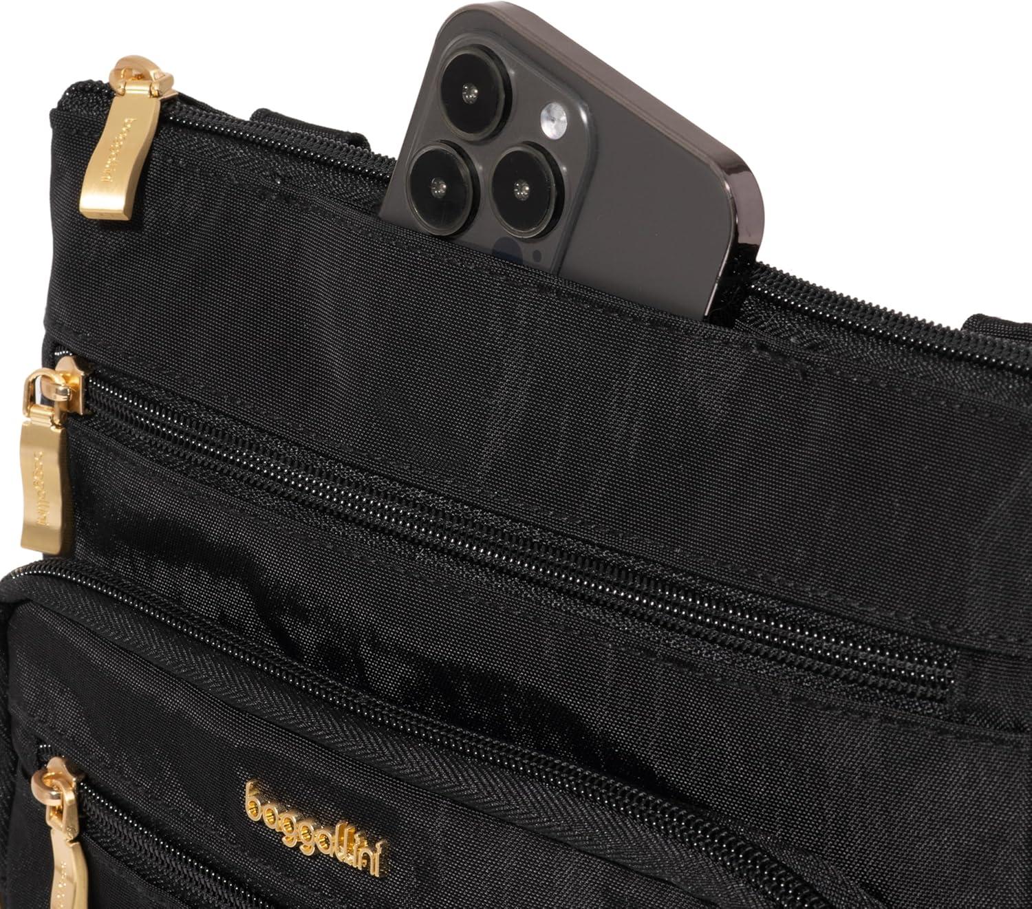 Looking for a crossbody bag with a little more organization? This is it. Designed with divided interior compartments, including a secret privacy pocket, say goodbye to fumbling around for that lip balm or cash. Plus, with a front pocket designed with RFID-protected slots, tuck away your cards without worry.