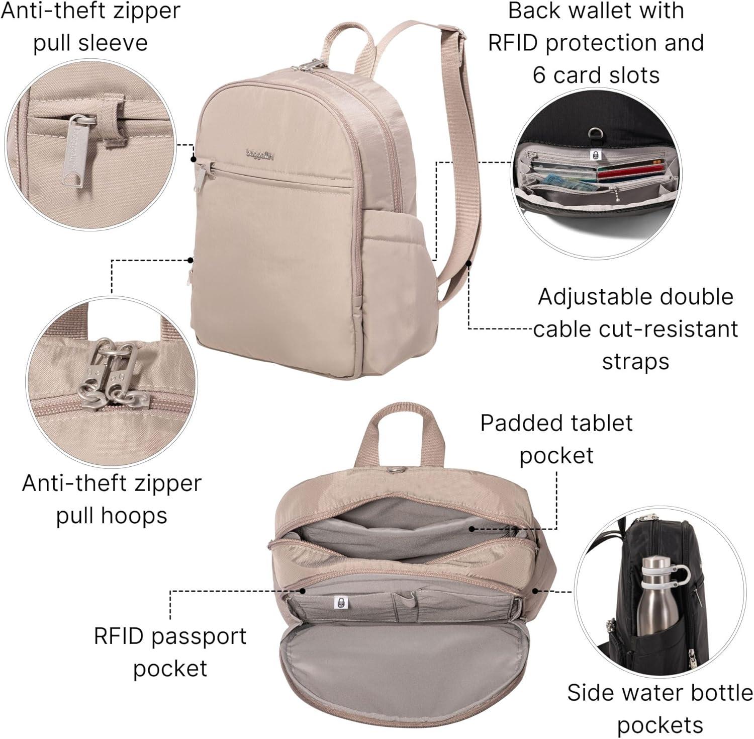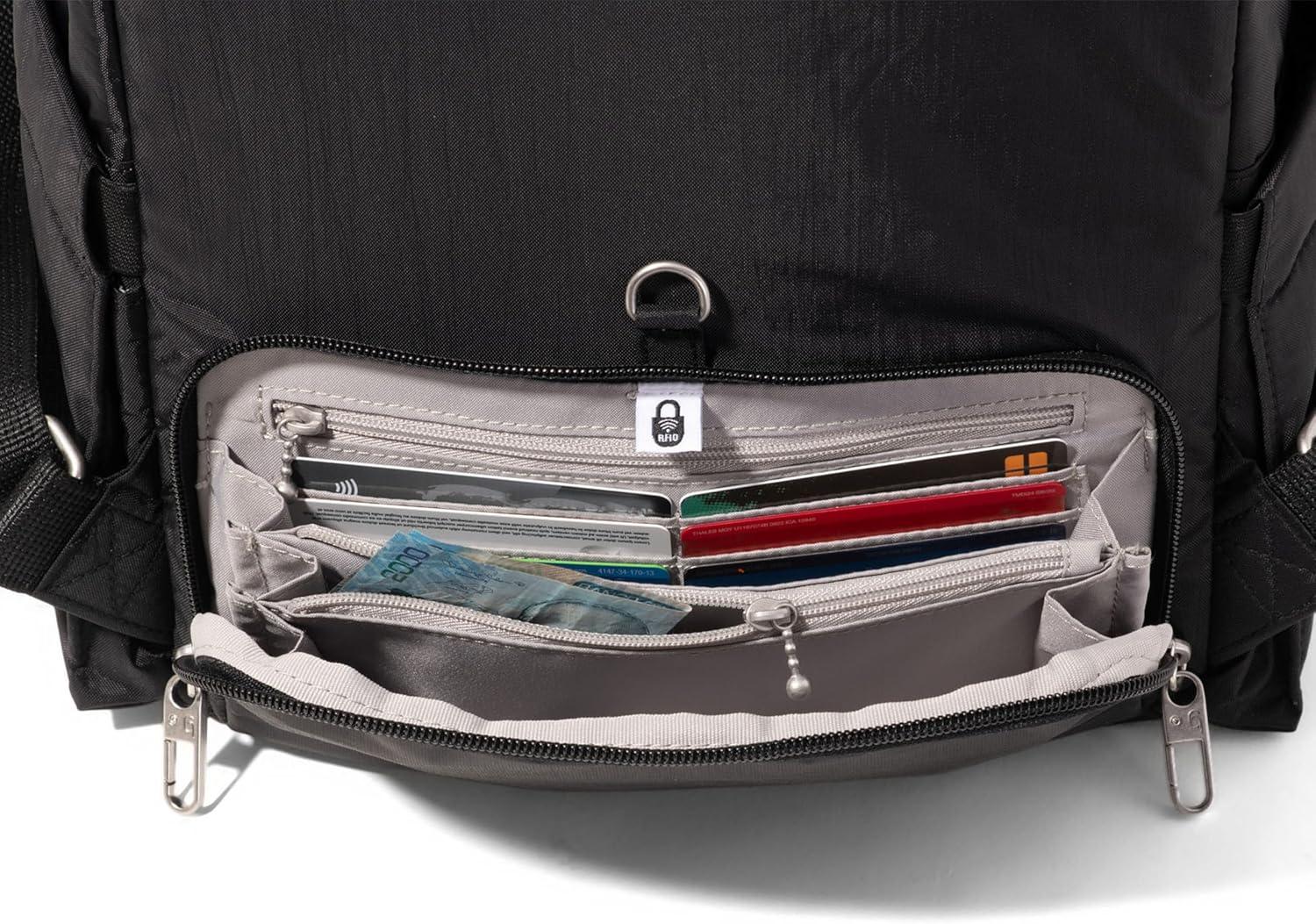 Securtex Anti-Theft Getaway Backpack – 9.4″x13″x5″ Travel Safe Bag w/Locking Zippers, Slash-Resistant, RFID(Moonrock)