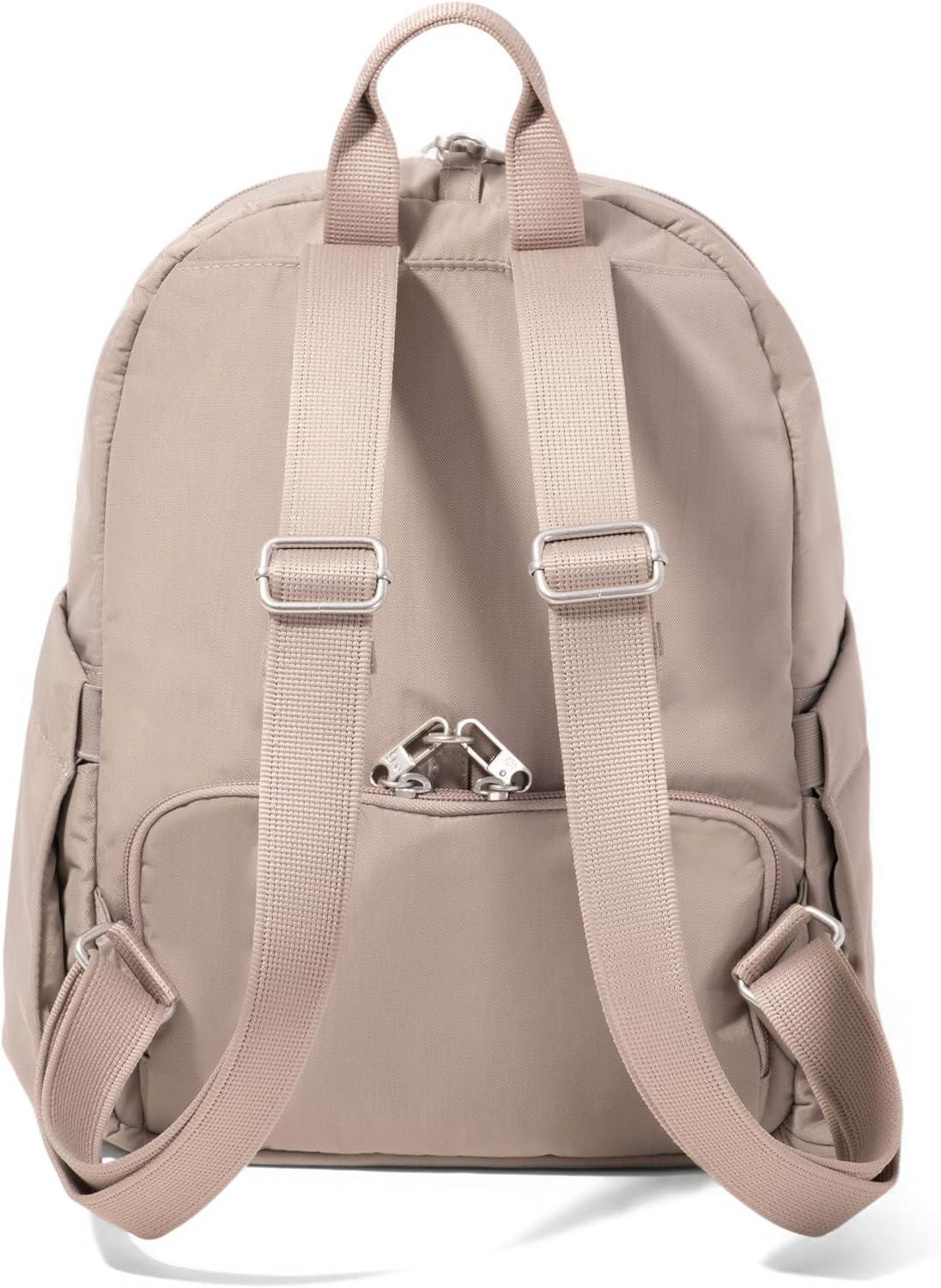 An icon, reimagined. The Securtex® Anti-Theft Getaway Backpack takes our best-selling style and elevates it with even smarter details. Crafted in durable TruNylon, it features locking zippers and cut-resistant material for peace of mind, plus roomy side pockets to keep your water bottle or umbrella close at hand. Sleek, secure, and endlessly versatile, it’s the backpack made for every journey. Stay confident and organized wherever you go with this women’s anti-theft backpack, designed for safety, style, and everyday versatility. Made from lightweight, water-repellent material with interior slash-resistant panels, it helps protect against pickpockets and unexpected weather. The double cable cut-resistant straps and locking zippers add powerful layers of protection, making it ideal for city commutes, vacations, or international travel. Inside, you’ll find a back wallet with six RFID-protected card slots and an RFID-protected passport pocket to help block unauthorized scanning of personal data. Smart organization features include a privacy pocket, padded tablet pocket, penholder, and key leash, keeping essentials neatly stored and accessible. Side water bottle pockets and a carry handle make it easy to grab and go during travel or daily routines. With compact dimensions of 9.4” W x 13” H x 5” D and a 12 L capacity, this backpack offers the perfect balance of function and fashion—spacious enough for your tablet, wallet, and travel essentials while maintaining a sleek silhouette. Whether you’re navigating busy airports, exploring new destinations, or commuting to work, this lightweight RFID backpack purse delivers the perfect blend of security, convenience, and modern style for women on the move.