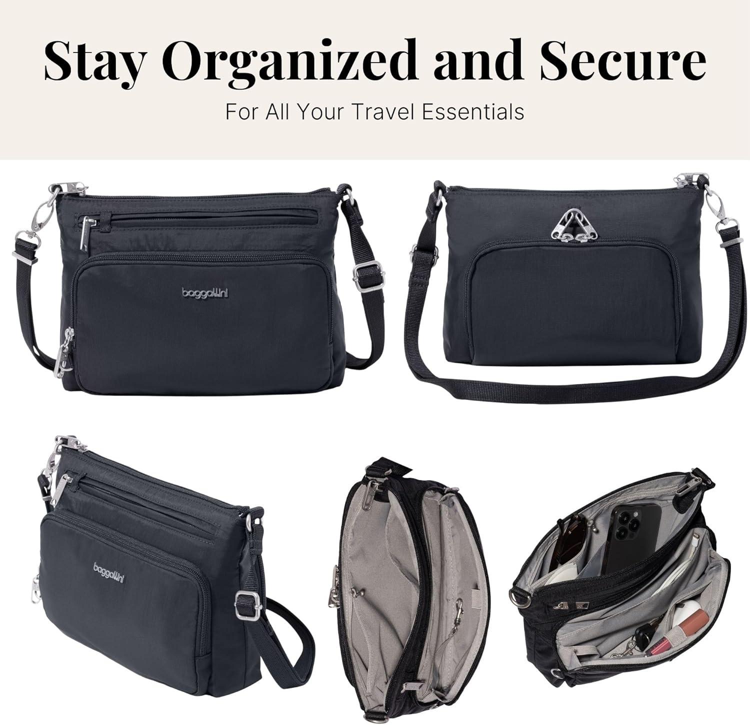 imageBaggallini Securtex AntiTheft Crossbody 825quotx825quot Travel Purse with RFID Locking Zippers ampamp CutResistant StrapIndigo Petal