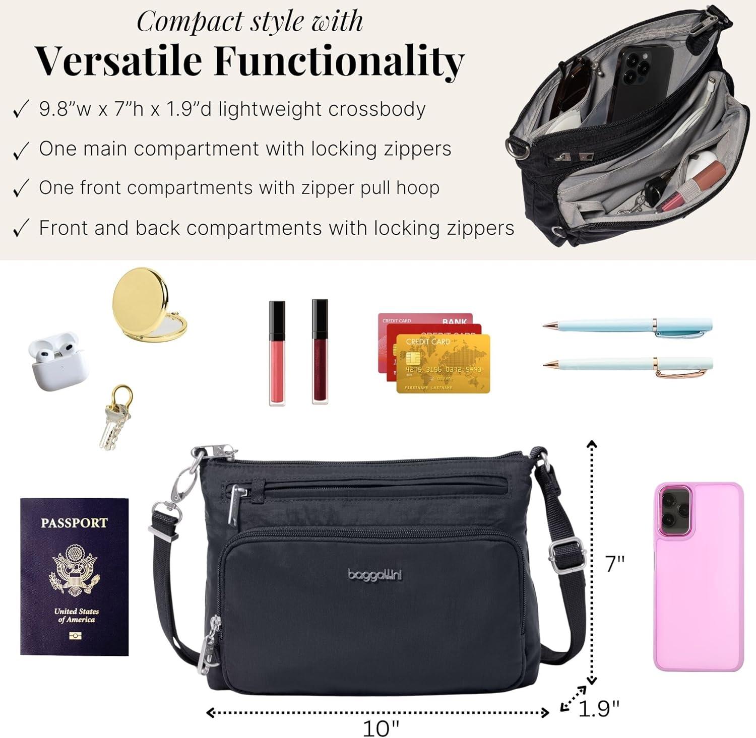 Baggallini Securtex Anti-Theft Crossbody 8.25″x8.25″ Travel Purse with RFID, Locking Zippers & Cut-Resistant Strap(Indigo Petal)